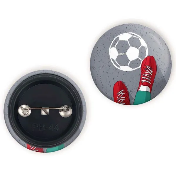 پیکسل 44 میلی متری فوتبال Football خندالو با روکش سلفون حرارتی مات مخملی ضدخش و قطعه پشتی رنگی تولید شده است.پلاستیکی پشت پیکسل با سوزن یک تکه ثابت و بدون لغزش و جا به جایی، ایستایی بسیار بهتری نسبت به پشتی فلزی پیکسل دارند که این مهم در تولید این محصول نیز رعایت شده است.