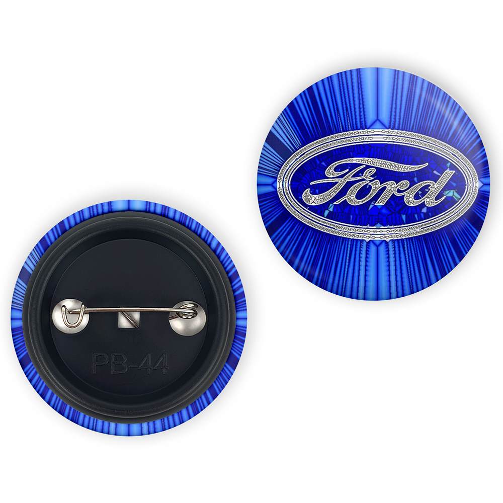 پیکسل 44 میلی متری فورد Fordخندالو با روکش سلفون حرارتی مات مخملی ضدخش و قطعه پشتی رنگی تولید شده است. قطعات پلاستیکی پشت پیکسل با سوزن یک تکه ثابت و بدون لغزش و جا به جایی، ایستایی بسیار بهتری نسبت به پشتی فلزی پیکسل دارند که این مهم در تولید این محصول نیز رعایت شده است.