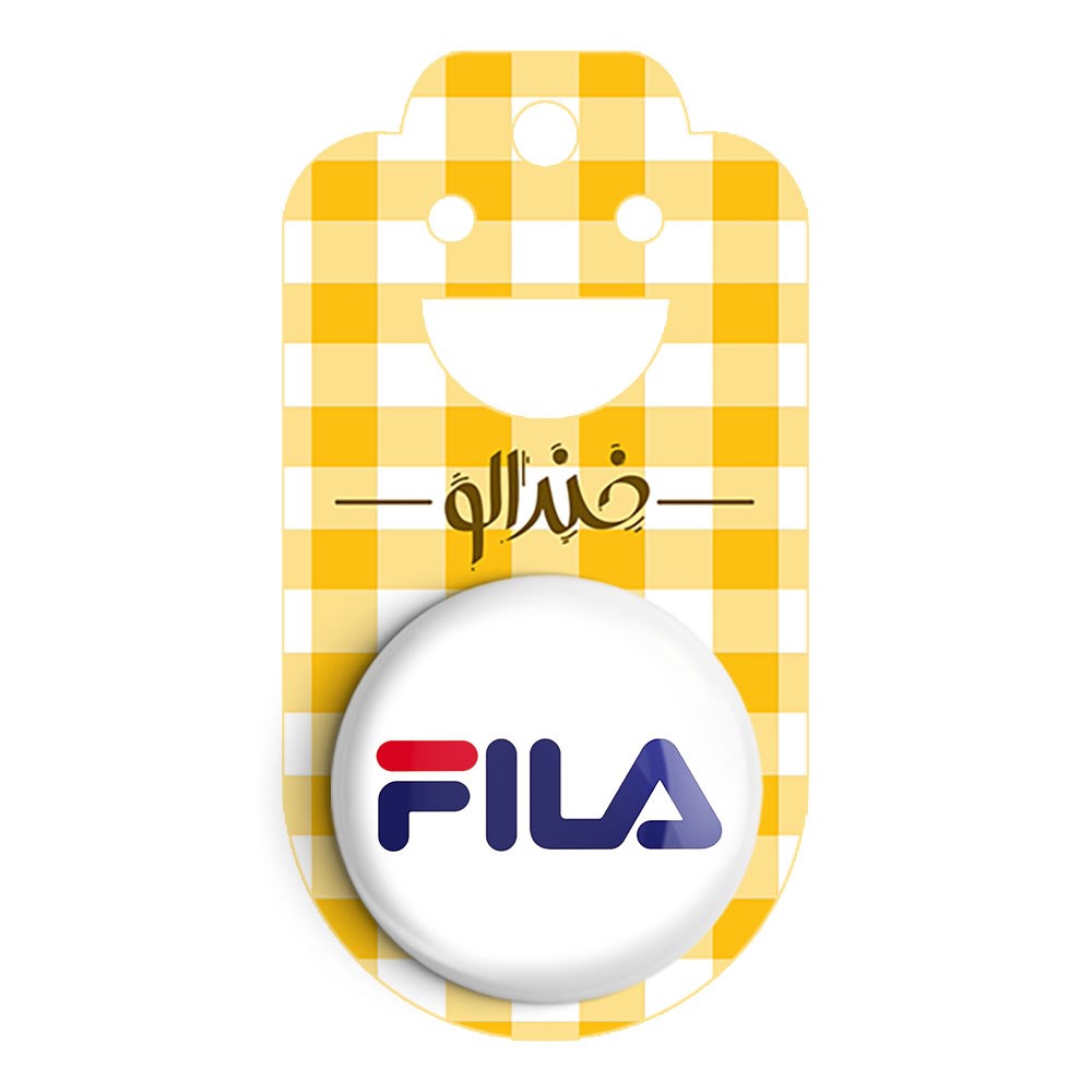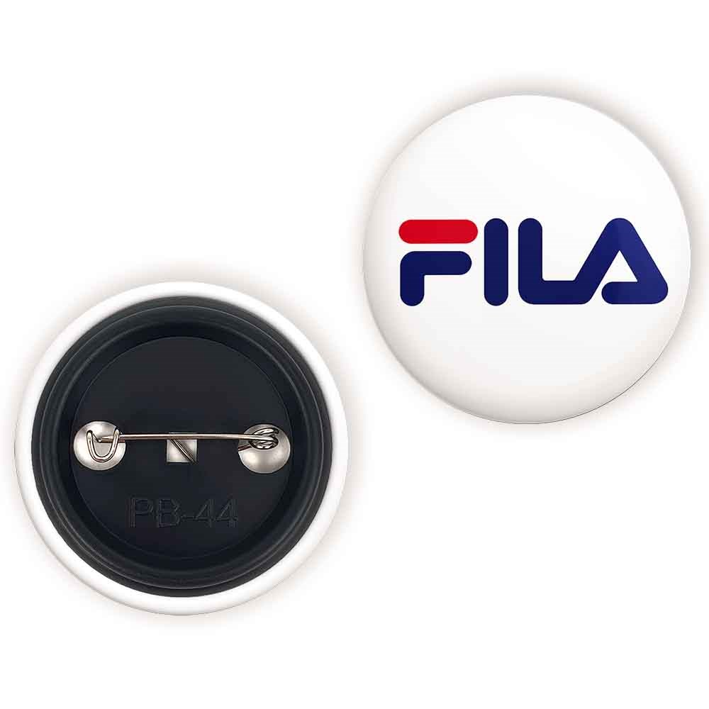 پیکسل 44 میلی متری فیلا FILA خندالو با روکش سلفون حرارتی مات مخملی ضدخش و قطعه پشتی رنگی تولید شده است.پلاستیکی پشت پیکسل با سوزن یک تکه ثابت و بدون لغزش و جا به جایی، ایستایی بسیار بهتری نسبت به پشتی فلزی پیکسل دارند که این مهم در تولید این محصول نیز رعایت شده است.