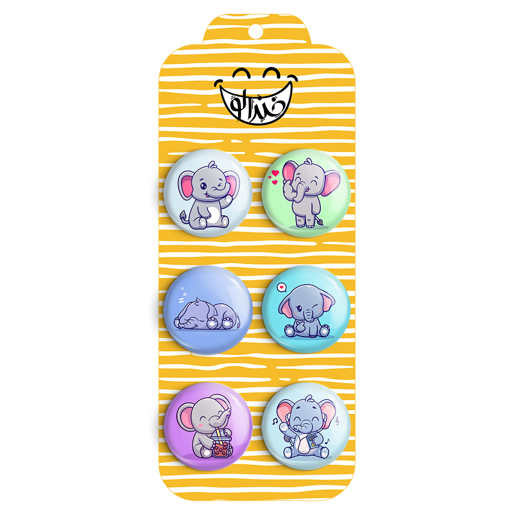 مجموعه 6 عددی پیکسل خندالو طرح فیل کوچولو با روکش سلفون حرارتی براق ضدخش و قطعه پشتی رنگی تولید شده است. قطعات پشتی از میان 6 رنگ سفید، مشکی، صورتی، زرد، آبی و قرمز که با توجه به نوع و رنگبندی طرح روی پیکسل انتخاب شده اند تولید می شود و در هر بسته بندی مطابق عکس محصول می باشد.