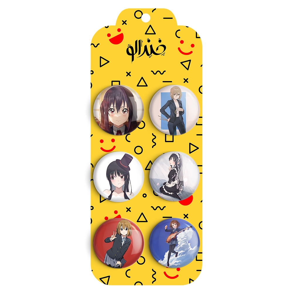 مجموعه 6 عددی پیکسل خندالو طرح كي اون (K On) با روکش سلفون حرارتی براق ضدخش و قطعه پشتی رنگی تولید شده است. قطعات پشتی از میان 6 رنگ سفید، مشکی، صورتی، زرد، آبی و قرمز که با توجه به نوع و رنگبندی طرح روی پیکسل انتخاب شده اند تولید می شود و در هر بسته بندی مطابق عکس محصول می باشد.