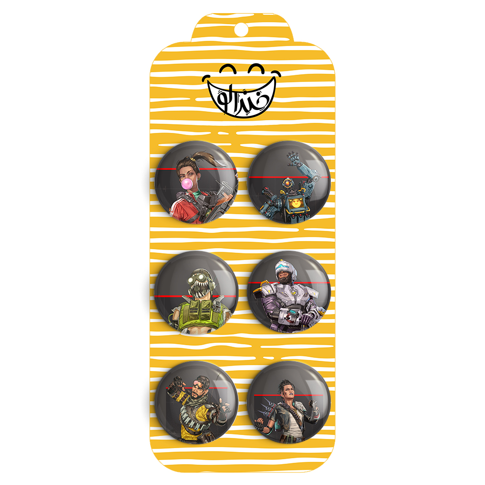مجموعه 6 عددی پیکسل خندالو طرح لجندهای اپکس لجندز با روکش سلفون حرارتی براق ضدخش و قطعه پشتی رنگی تولید شده است. قطعات پشتی از میان 6 رنگ سفید، مشکی، صورتی، زرد، آبی و قرمز که با توجه به نوع و رنگبندی طرح روی پیکسل انتخاب شده اند تولید می شود و در هر بسته بندی مطابق عکس محصول می باشد.
