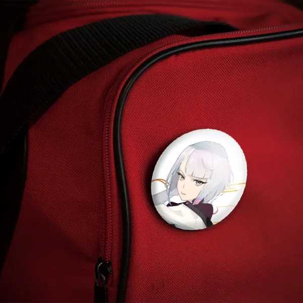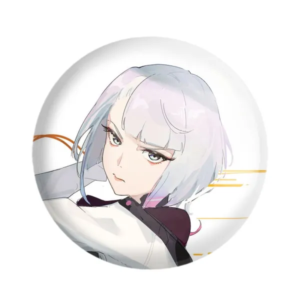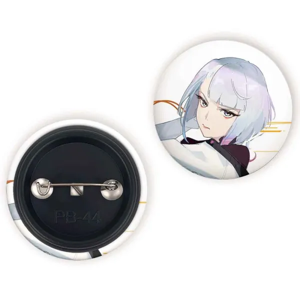 پیکسل 44 میلی متری لوسی انیمه سایبرپانک خندالو با روکش سلفون حرارتی مات مخملی ضدخش و قطعه پشتی رنگی تولید شده است.پلاستیکی پشت پیکسل با سوزن یک تکه ثابت و بدون لغزش و جا به جایی، ایستایی بسیار بهتری نسبت به پشتی فلزی پیکسل دارند که این مهم در تولید این محصول نیز رعایت شده است.
