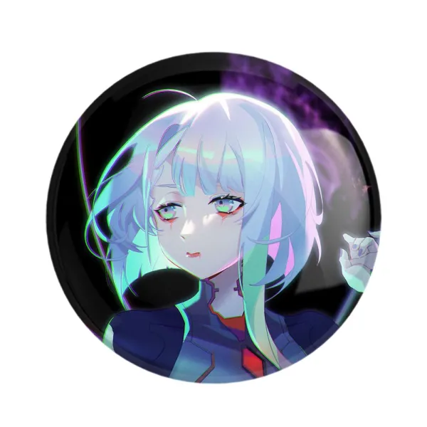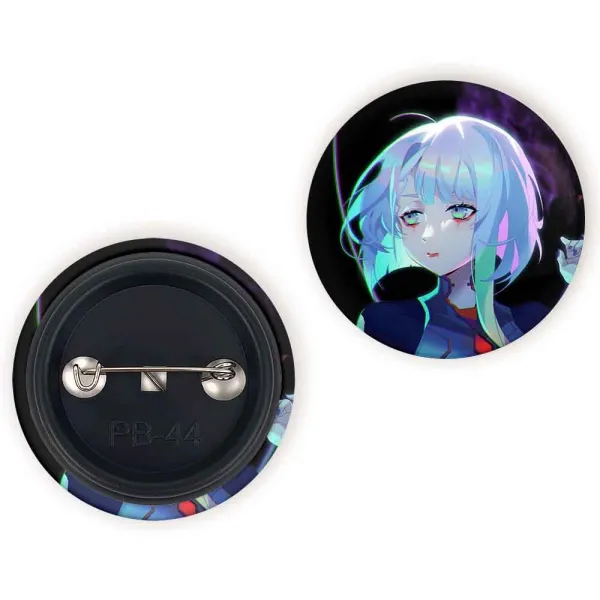 پیکسل 44 میلی متری لوسی انیمه سایبرپانک خندالو با روکش سلفون حرارتی مات مخملی ضدخش و قطعه پشتی رنگی تولید شده است.پلاستیکی پشت پیکسل با سوزن یک تکه ثابت و بدون لغزش و جا به جایی، ایستایی بسیار بهتری نسبت به پشتی فلزی پیکسل دارند که این مهم در تولید این محصول نیز رعایت شده است.