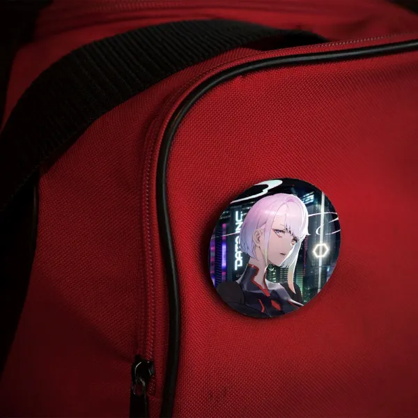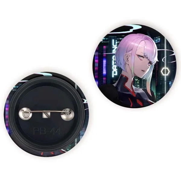 پیکسل 44 میلی متری لوسی انیمه سایبرپانک خندالو با روکش سلفون حرارتی مات مخملی ضدخش و قطعه پشتی رنگی تولید شده است.پلاستیکی پشت پیکسل با سوزن یک تکه ثابت و بدون لغزش و جا به جایی، ایستایی بسیار بهتری نسبت به پشتی فلزی پیکسل دارند که این مهم در تولید این محصول نیز رعایت شده است.