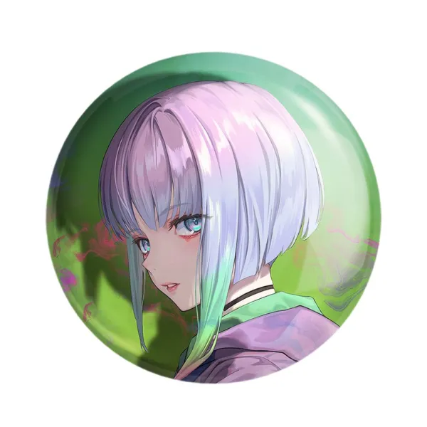 پیکسل 44 میلی متری لوسی انیمه سایبر پانک Cyberpunk خندالو با روکش سلفون حرارتی مات مخملی ضدخش و قطعه پشتی رنگی تولید شده است.پلاستیکی پشت پیکسل با سوزن یک تکه ثابت و بدون لغزش و جا به جایی، ایستایی بسیار بهتری نسبت به پشتی فلزی پیکسل دارند که این مهم در تولید این محصول نیز رعایت شده است.