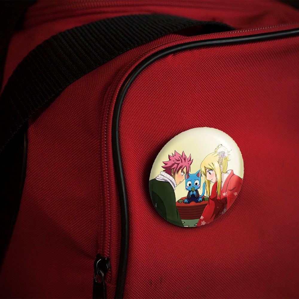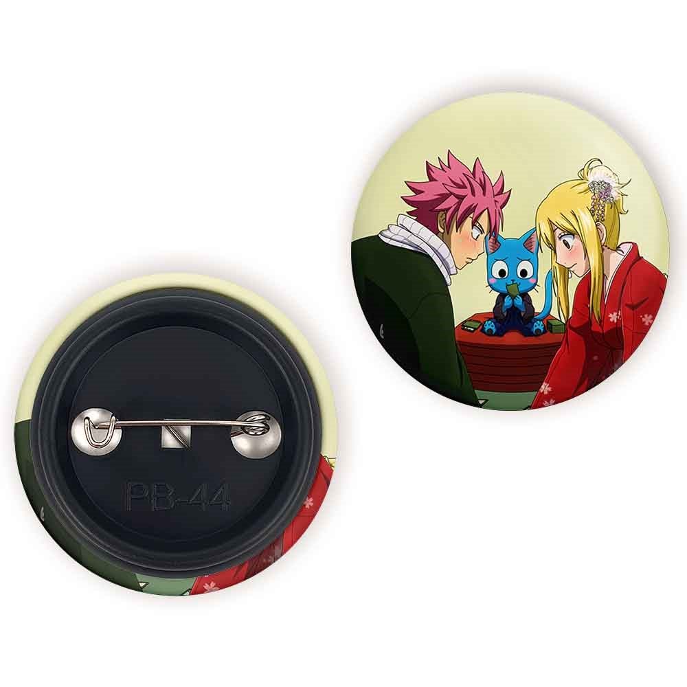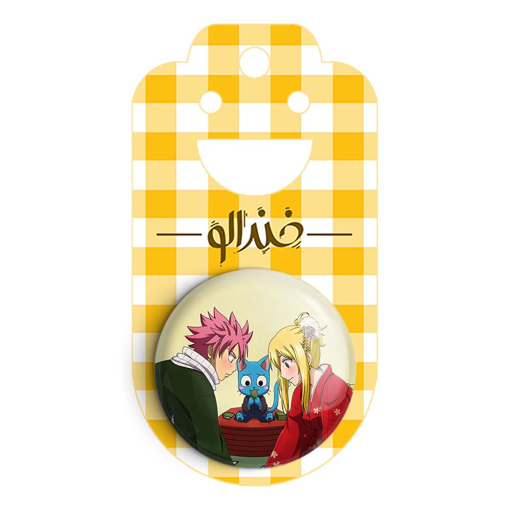 پیکسل 44 میلی متری لوسی و ناتسو انیمه فری تیل Fairy Tail خندالو با روکش سلفون حرارتی مات مخملی ضدخش و قطعه پشتی رنگی تولید شده است.پلاستیکی پشت پیکسل با سوزن یک تکه ثابت و بدون لغزش و جا به جایی، ایستایی بسیار بهتری نسبت به پشتی فلزی پیکسل دارند که این مهم در تولید این محصول نیز رعایت شده است.