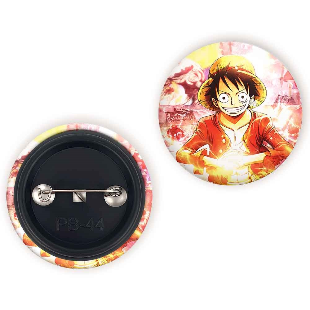 پیکسل 44 میلی متری لوفی انیمه وان پیس One Piece خندالو با روکش سلفون حرارتی مات مخملی ضدخش و قطعه پشتی رنگی تولید شده است.پلاستیکی پشت پیکسل با سوزن یک تکه ثابت و بدون لغزش و جا به جایی، ایستایی بسیار بهتری نسبت به پشتی فلزی پیکسل دارند که این مهم در تولید این محصول نیز رعایت شده است.