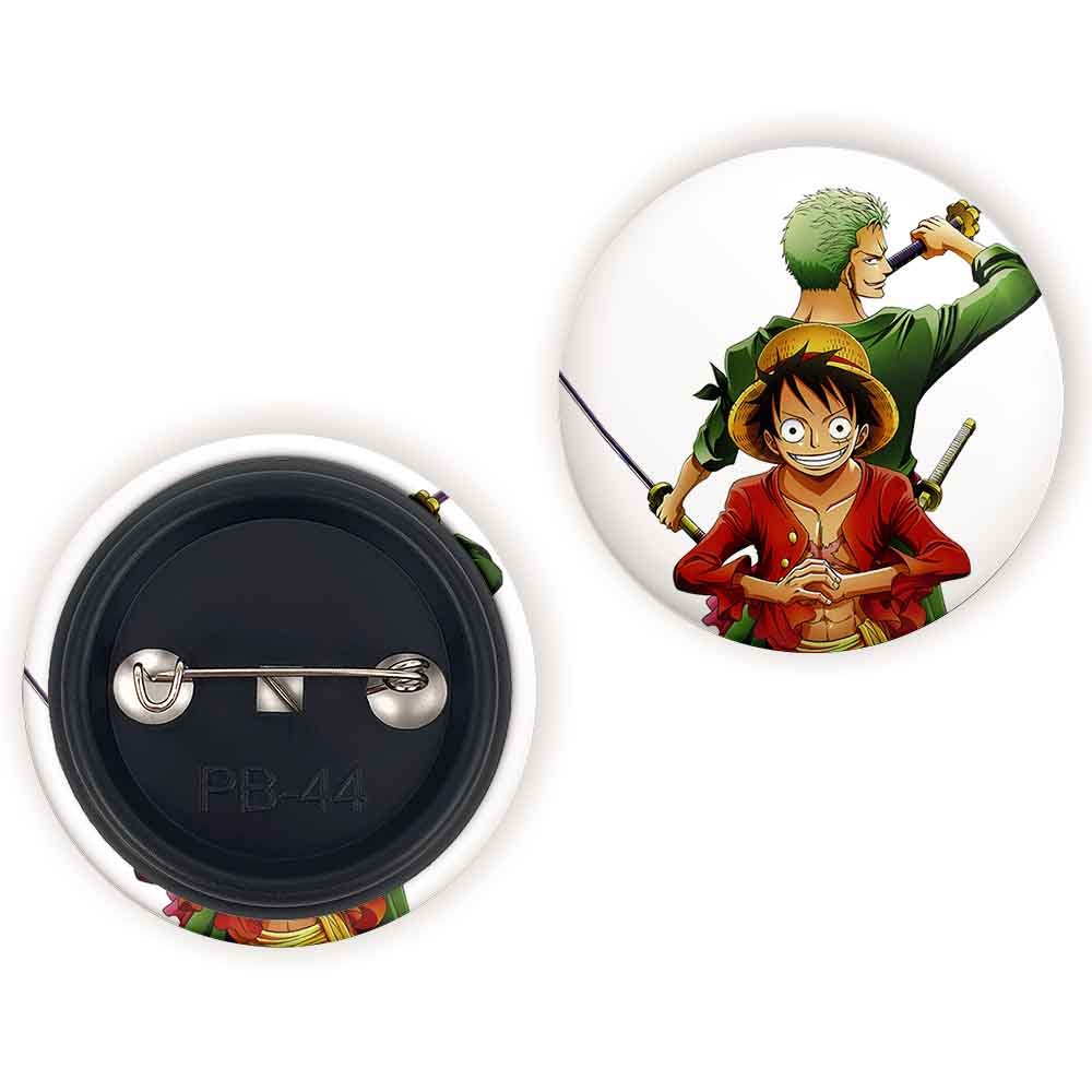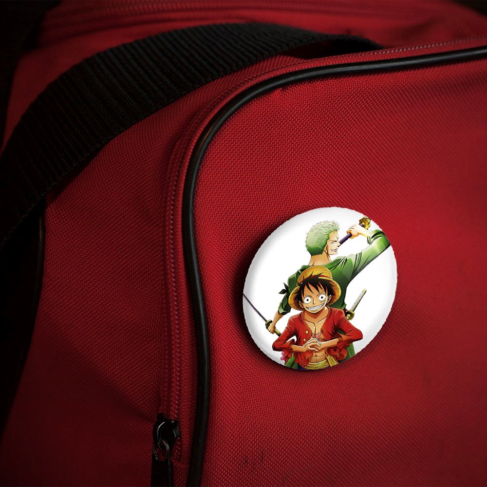 پیکسل 44 میلی متری لوفی و زورو انیمه وان پیس One Piece خندالو با روکش سلفون حرارتی مات مخملی ضدخش و قطعه پشتی رنگی تولید شده است.پلاستیکی پشت پیکسل با سوزن یک تکه ثابت و بدون لغزش و جا به جایی، ایستایی بسیار بهتری نسبت به پشتی فلزی پیکسل دارند که این مهم در تولید این محصول نیز رعایت شده است.