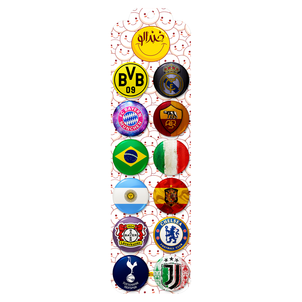 پک 12 عددی پیکسل خندالو طرح لوگو باشگاه های فوتبال با روکش سلفون حرارتی براق ضدخش و قطعه پشتی رنگی تولید شده است. قطعات پشتی از میان 6 رنگ سفید، مشکی، صورتی، زرد، آبی و قرمز که با توجه به نوع و رنگبندی طرح روی پیکسل انتخاب شده اند تولید می شود و در هر بسته بندی مطابق عکس محصول می باشد. قطعات پلاستیکی پشت پیکسل با سوزن یک تکه ثابت و بدون لغزش و جا به جایی، ایستایی بسیار بهتری نسبت به پشتی فلزی پیکسل دارند که این مهم در تولید این محصول نیز رعایت شده است.