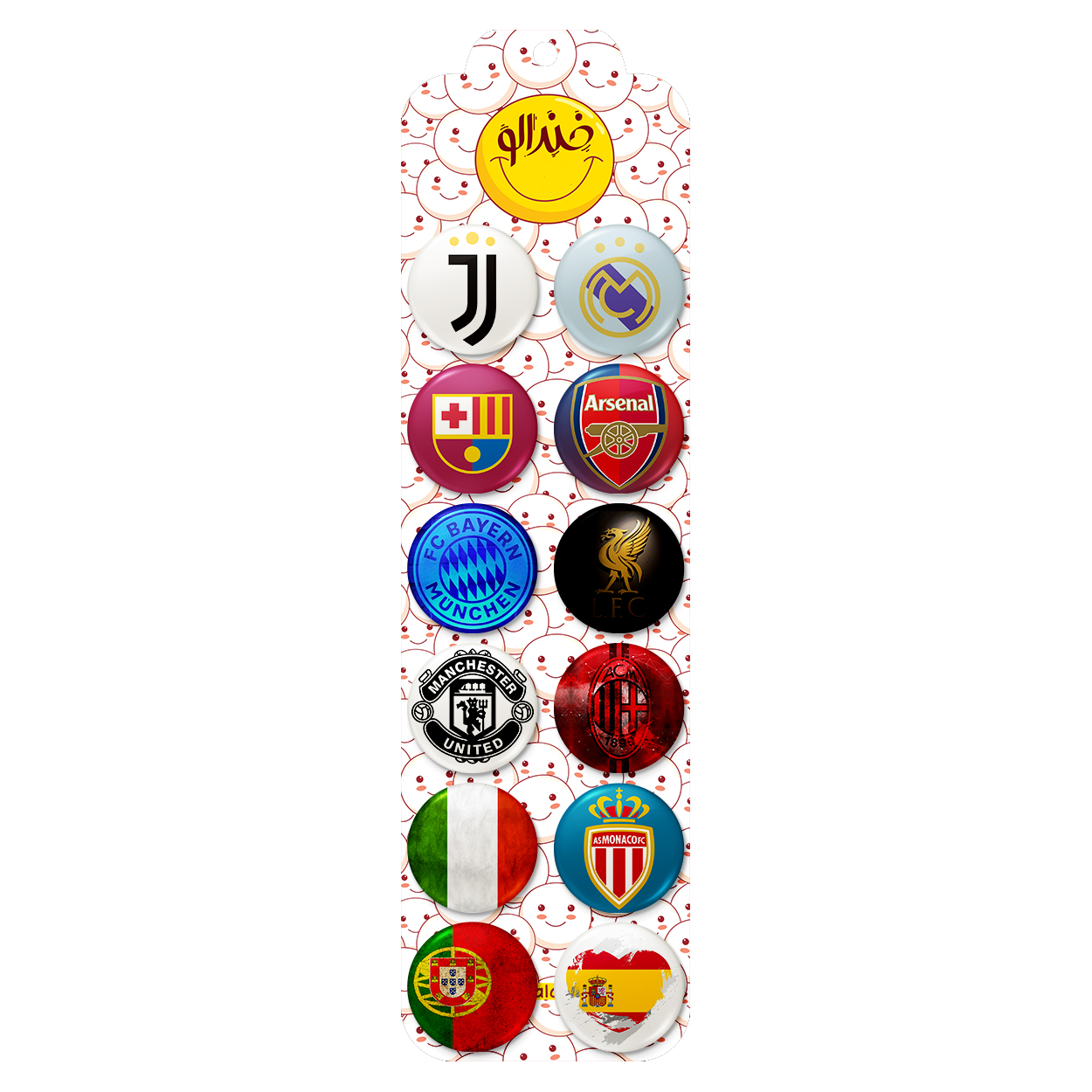پک 12 عددی پیکسل خندالو طرح لوگو باشگاه های فوتبال با روکش سلفون حرارتی براق ضدخش و قطعه پشتی رنگی تولید شده است. قطعات پشتی از میان 6 رنگ سفید، مشکی، صورتی، زرد، آبی و قرمز که با توجه به نوع و رنگبندی طرح روی پیکسل انتخاب شده اند تولید می شود و در هر بسته بندی مطابق عکس محصول می باشد. قطعات پلاستیکی پشت پیکسل با سوزن یک تکه ثابت و بدون لغزش و جا به جایی، ایستایی بسیار بهتری نسبت به پشتی فلزی پیکسل دارند که این مهم در تولید این محصول نیز رعایت شده است.
