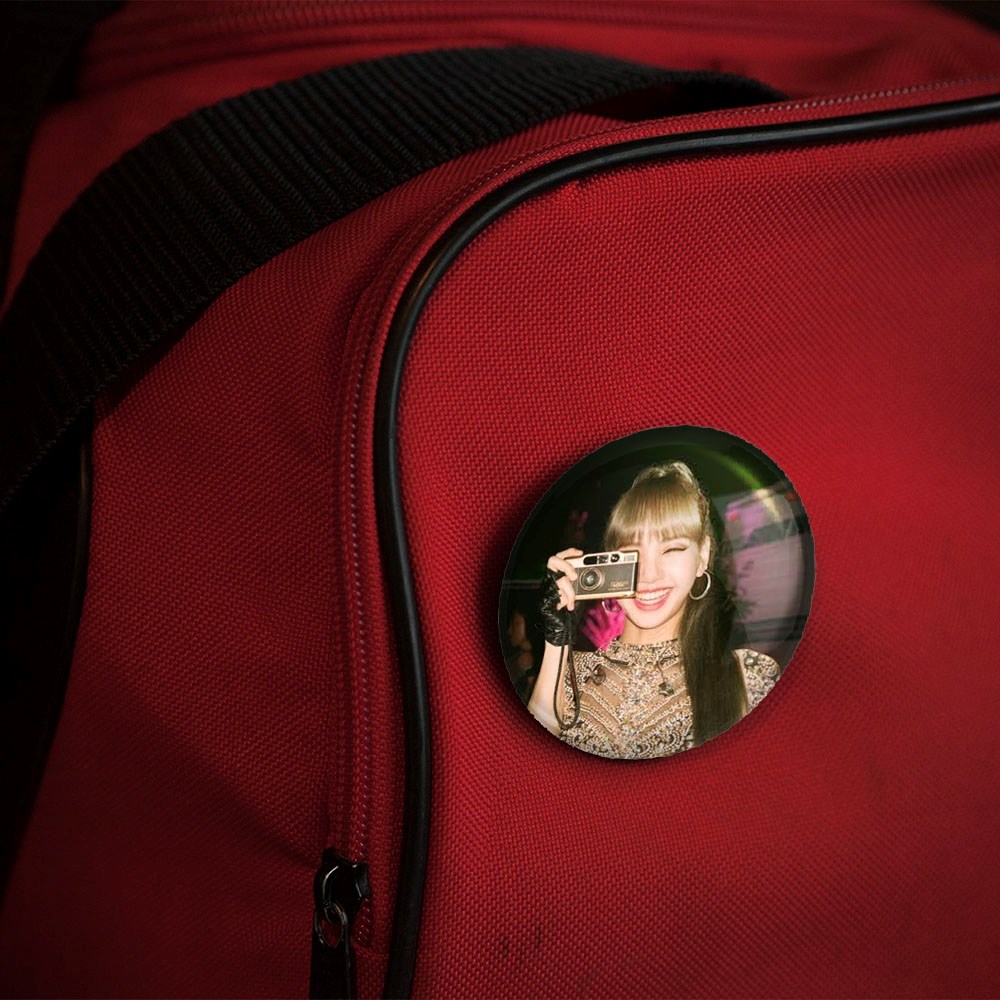 پیکسل 44 میلی متری لیسا بلک پینک Black Pink خندالو با روکش سلفون حرارتی مات مخملی ضدخش و قطعه پشتی رنگی تولید شده است.پلاستیکی پشت پیکسل با سوزن یک تکه ثابت و بدون لغزش و جا به جایی، ایستایی بسیار بهتری نسبت به پشتی فلزی پیکسل دارند که این مهم در تولید این محصول نیز رعایت شده است.