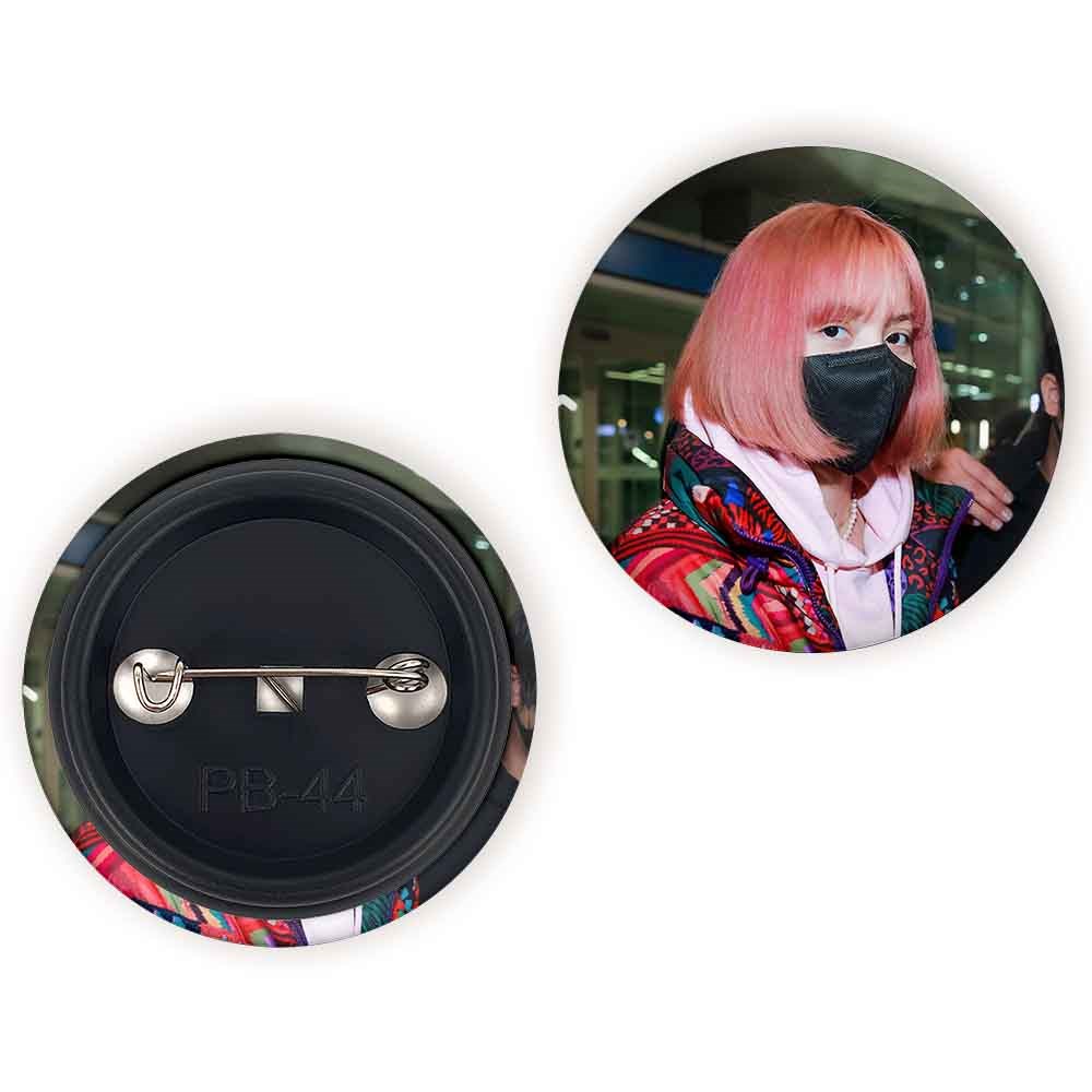 پیکسل 44 میلی متری لیسا بلک پینک Black Pink خندالو با روکش سلفون حرارتی مات مخملی ضدخش و قطعه پشتی رنگی تولید شده است.پلاستیکی پشت پیکسل با سوزن یک تکه ثابت و بدون لغزش و جا به جایی، ایستایی بسیار بهتری نسبت به پشتی فلزی پیکسل دارند که این مهم در تولید این محصول نیز رعایت شده است.