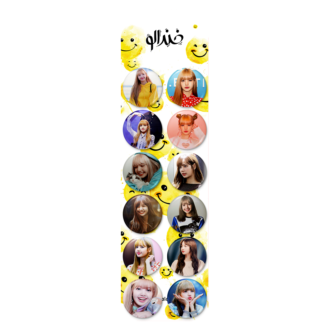 پک 12 عددی پیکسل خندالو طرح لیسا بلک پینک (Black Pink) با روکش سلفون حرارتی براق ضدخش و قطعه پشتی رنگی تولید شده است. قطعات پشتی از میان 6 رنگ سفید، مشکی، صورتی، زرد، آبی و قرمز که با توجه به نوع و رنگبندی طرح روی پیکسل انتخاب شده اند تولید می شود و در هر بسته بندی مطابق عکس محصول می باشد. قطعات پلاستیکی پشت پیکسل با سوزن یک تکه ثابت و بدون لغزش و جا به جایی، ایستایی بسیار بهتری نسبت به پشتی فلزی پیکسل دارند که این مهم در تولید این محصول نیز رعایت شده است.
