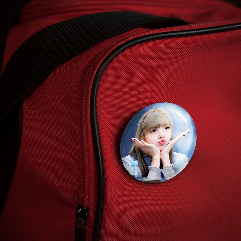 پیکسل 44 میلی متری لیسا گروه بلک پینک Black Pink خندالو با روکش سلفون حرارتی مات مخملی ضدخش و قطعه پشتی رنگی تولید شده است.پلاستیکی پشت پیکسل با سوزن یک تکه ثابت و بدون لغزش و جا به جایی، ایستایی بسیار بهتری نسبت به پشتی فلزی پیکسل دارند که این مهم در تولید این محصول نیز رعایت شده است.