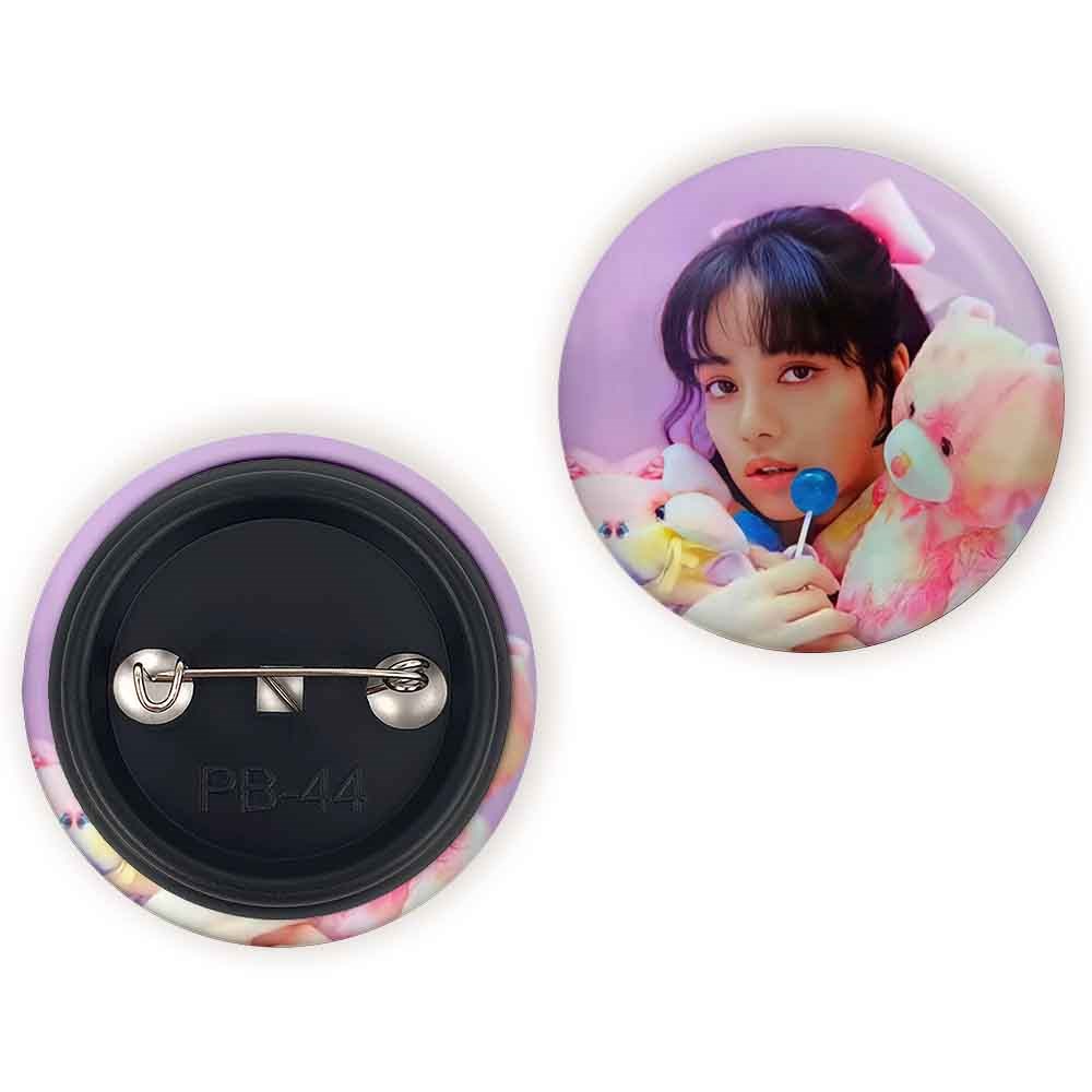 پیکسل 44 میلی متری لیسا گروه بلک پینک Black Pink خندالو با روکش سلفون حرارتی مات مخملی ضدخش و قطعه پشتی رنگی تولید شده است.پلاستیکی پشت پیکسل با سوزن یک تکه ثابت و بدون لغزش و جا به جایی، ایستایی بسیار بهتری نسبت به پشتی فلزی پیکسل دارند که این مهم در تولید این محصول نیز رعایت شده است.