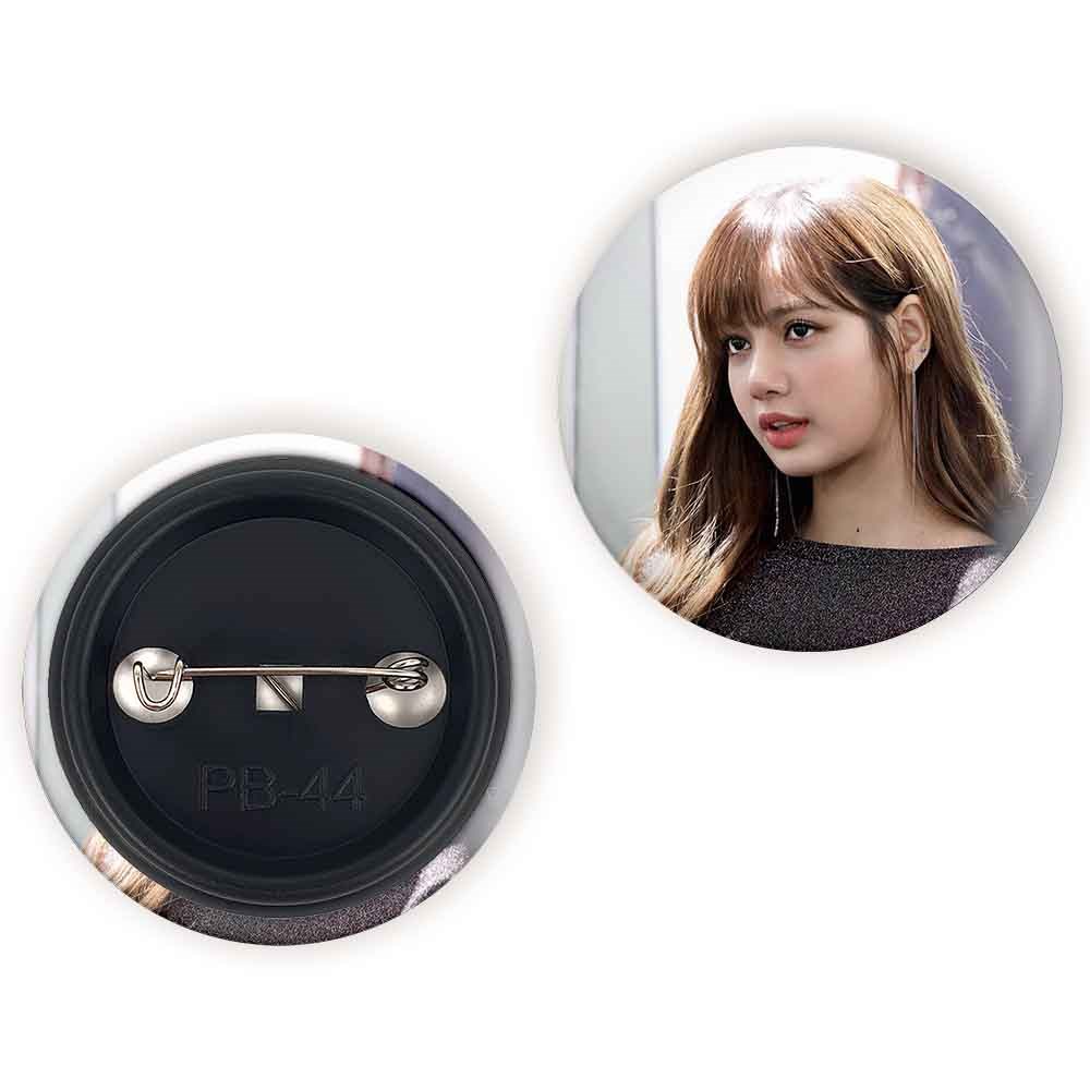 پیکسل 44 میلی متری لیسا گروه بلک پینک Black Pink خندالو با روکش سلفون حرارتی مات مخملی ضدخش و قطعه پشتی رنگی تولید شده است.پلاستیکی پشت پیکسل با سوزن یک تکه ثابت و بدون لغزش و جا به جایی، ایستایی بسیار بهتری نسبت به پشتی فلزی پیکسل دارند که این مهم در تولید این محصول نیز رعایت شده است.
