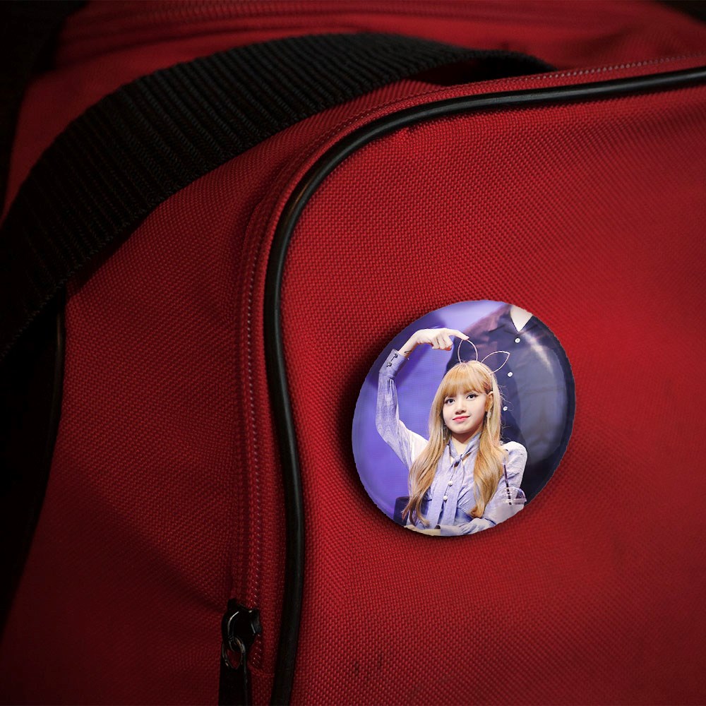 پیکسل 44 میلی متری لیسا گروه بلک پینک Black Pink خندالو با روکش سلفون حرارتی مات مخملی ضدخش و قطعه پشتی رنگی تولید شده است.پلاستیکی پشت پیکسل با سوزن یک تکه ثابت و بدون لغزش و جا به جایی، ایستایی بسیار بهتری نسبت به پشتی فلزی پیکسل دارند که این مهم در تولید این محصول نیز رعایت شده است.