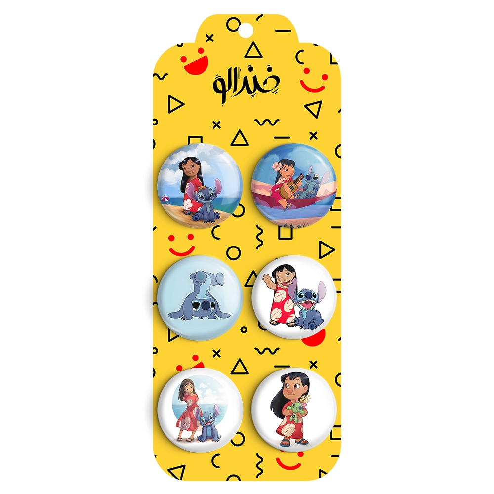 مجموعه 6 عددی پیکسل خندالو طرح لیلو و استیچ با روکش سلفون حرارتی براق ضدخش و قطعه پشتی رنگی تولید شده است. قطعات پشتی از میان 6 رنگ سفید، مشکی، صورتی، زرد، آبی و قرمز که با توجه به نوع و رنگبندی طرح روی پیکسل انتخاب شده اند تولید می شود و در هر بسته بندی مطابق عکس محصول می باشد. قطعات پلاستیکی پشت پیکسل با سوزن یک تکه ثابت و بدون لغزش و جا به جایی، ایستایی بسیار بهتری نسبت به پشتی فلزی پیکسل دارند که این مهم در تولید این محصول نیز رعایت شده است. چاپ پیکسل نیز با دستگاه های استاندارد و با بهترین سطح کیفی صورت گرفته و طرح با شفافیتی مثال زدنی و با سلفونی بدون شکست نور بر روی پیکسل نقش بسته است. همچنین بسته بندی جذاب و مینیمال پیکسل ها، آنها را مناسب هدیه کرده است..
