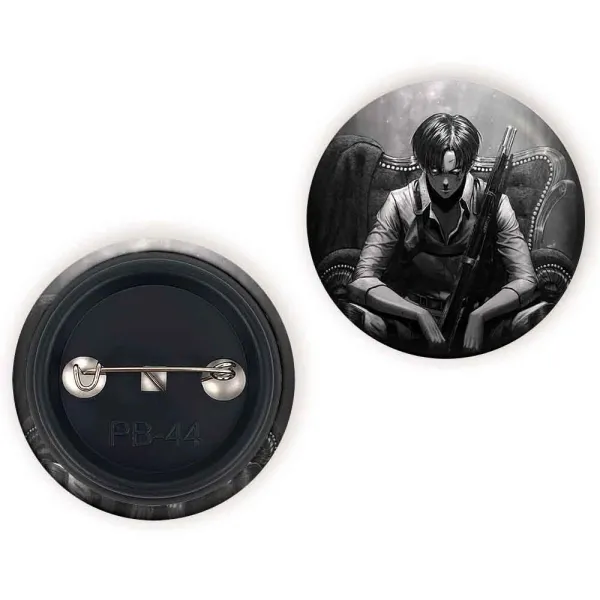 پیکسل 44 میلی متری لیوای آکرمن انیمه اتک آن تایتان Attack on Titan خندالو با روکش سلفون حرارتی مات مخملی ضدخش و قطعه پشتی رنگی تولید شده است.پلاستیکی پشت پیکسل با سوزن یک تکه ثابت و بدون لغزش و جا به جایی، ایستایی بسیار بهتری نسبت به پشتی فلزی پیکسل دارند که این مهم در تولید این محصول نیز رعایت شده است.