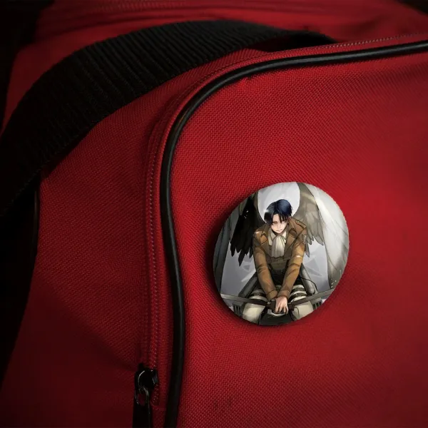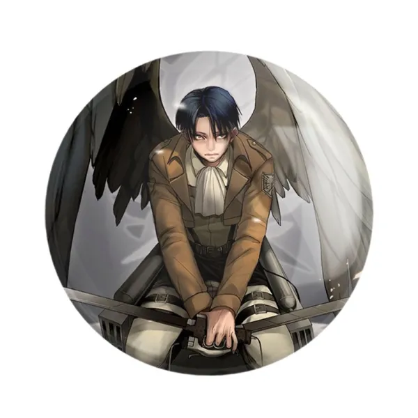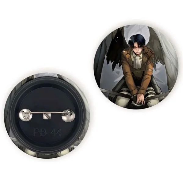 پیکسل 44 میلی متری لیوای آکرمن انیمه اتک آن تایتان Attack on Titan خندالو با روکش سلفون حرارتی مات مخملی ضدخش و قطعه پشتی رنگی تولید شده است.پلاستیکی پشت پیکسل با سوزن یک تکه ثابت و بدون لغزش و جا به جایی، ایستایی بسیار بهتری نسبت به پشتی فلزی پیکسل دارند که این مهم در تولید این محصول نیز رعایت شده است.