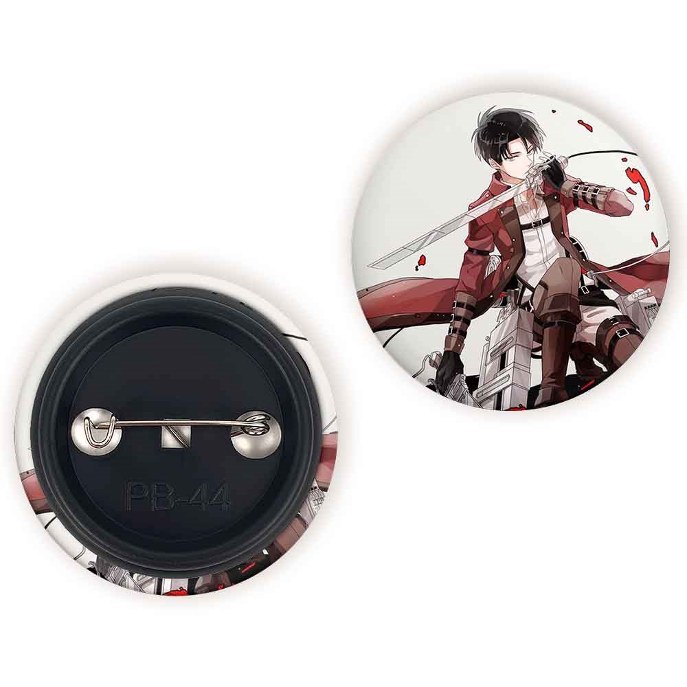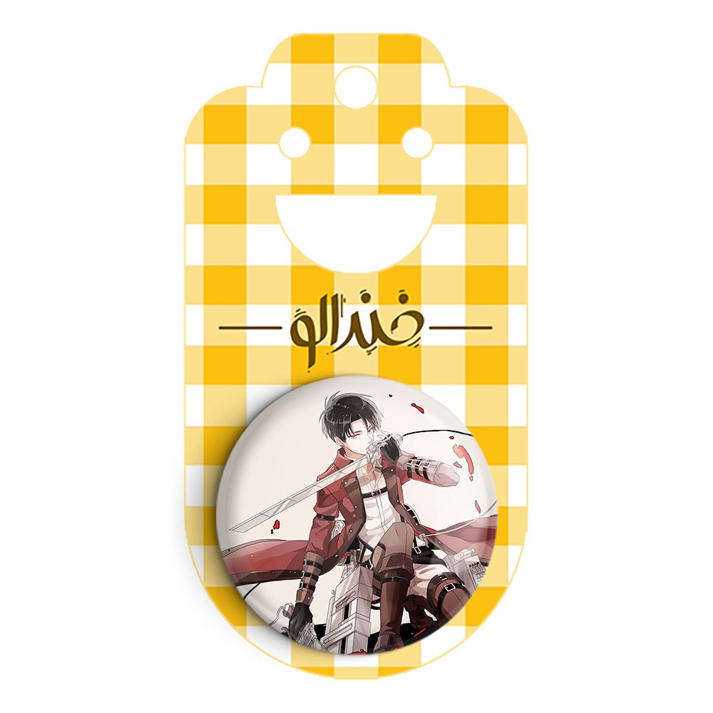 پیکسل 44 میلی متری لیوای انیمه اتک آن تایتان Attack on Titan خندالو با روکش سلفون حرارتی مات مخملی ضدخش و قطعه پشتی رنگی تولید شده است.پلاستیکی پشت پیکسل با سوزن یک تکه ثابت و بدون لغزش و جا به جایی، ایستایی بسیار بهتری نسبت به پشتی فلزی پیکسل دارند که این مهم در تولید این محصول نیز رعایت شده است.