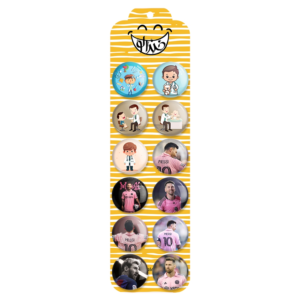 پک 12 عددی پیکسل خندالو طرح لیونل مسی با روکش سلفون حرارتی براق ضدخش و قطعه پشتی رنگی تولید شده است. قطعات پشتی از میان 6 رنگ سفید، مشکی، صورتی، زرد، آبی و قرمز که با توجه به نوع و رنگبندی طرح روی پیکسل انتخاب شده اند تولید می شود و در هر بسته بندی مطابق عکس محصول می باشد. قطعات پلاستیکی پشت پیکسل با سوزن یک تکه ثابت و بدون لغزش و جا به جایی، ایستایی بسیار بهتری نسبت به پشتی فلزی پیکسل دارند که این مهم در تولید این محصول نیز رعایت شده است.