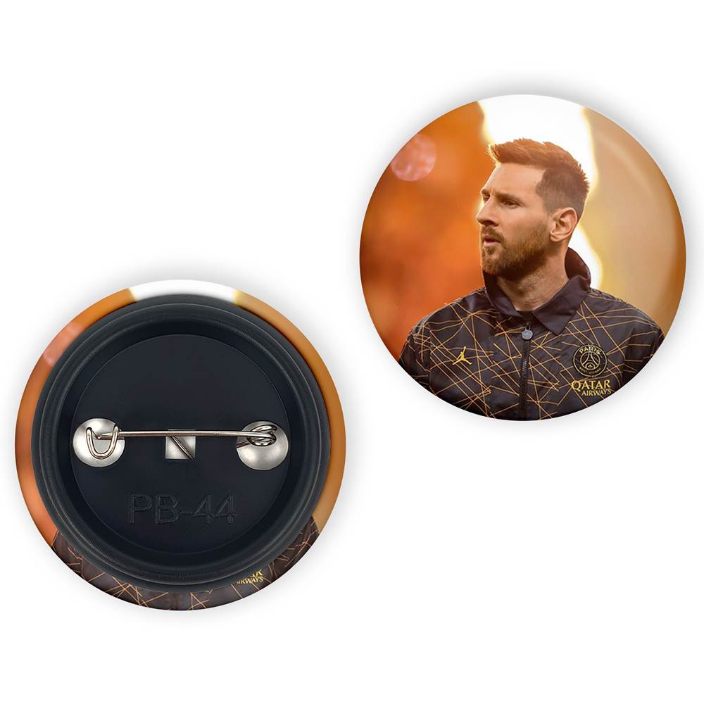پیکسل 44 میلی متری لیونل مسیخندالو با روکش سلفون حرارتی مات مخملی ضدخش و قطعه پشتی رنگی تولید شده است. قطعات پلاستیکی پشت پیکسل با سوزن یک تکه ثابت و بدون لغزش و جا به جایی، ایستایی بسیار بهتری نسبت به پشتی فلزی پیکسل دارند که این مهم در تولید این محصول نیز رعایت شده است.