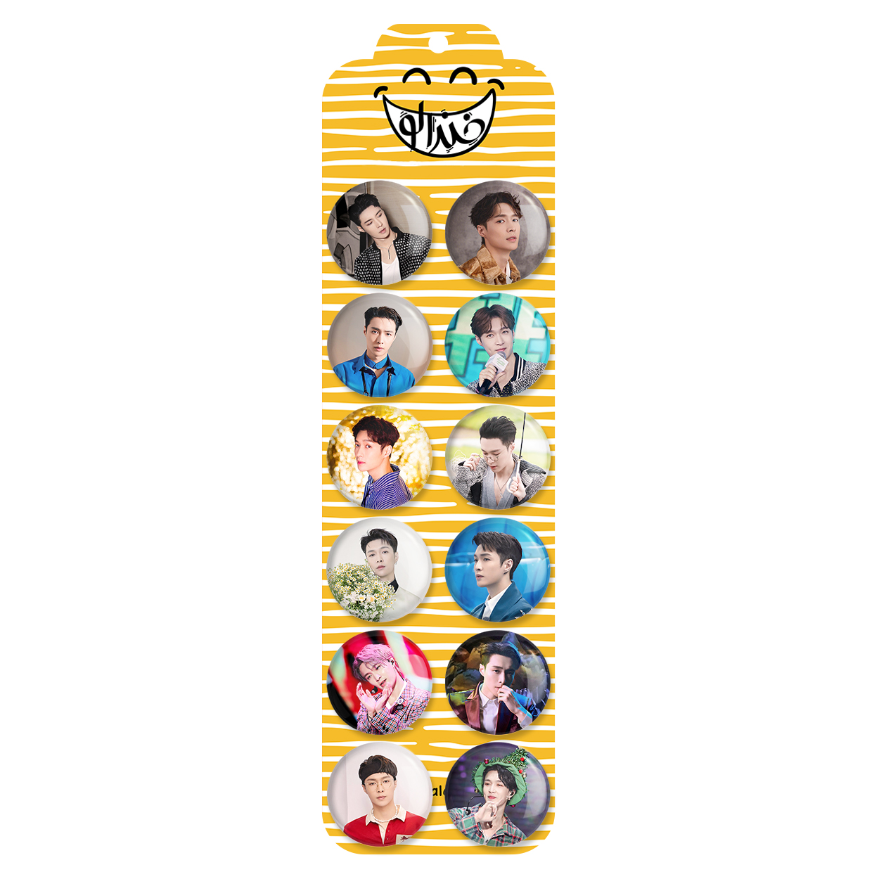 پک 12 عددی پیکسل خندالو طرح لی Lay اکسو EXO با روکش سلفون حرارتی براق ضدخش و قطعه پشتی رنگی تولید شده است. قطعات پشتی از میان 6 رنگ سفید، مشکی، صورتی، زرد، آبی و قرمز که با توجه به نوع و رنگبندی طرح روی پیکسل انتخاب شده اند تولید می شود و در هر بسته بندی مطابق عکس محصول می باشد. قطعات پلاستیکی پشت پیکسل با سوزن یک تکه ثابت و بدون لغزش و جا به جایی، ایستایی بسیار بهتری نسبت به پشتی فلزی پیکسل دارند که این مهم در تولید این محصول نیز رعایت شده است.