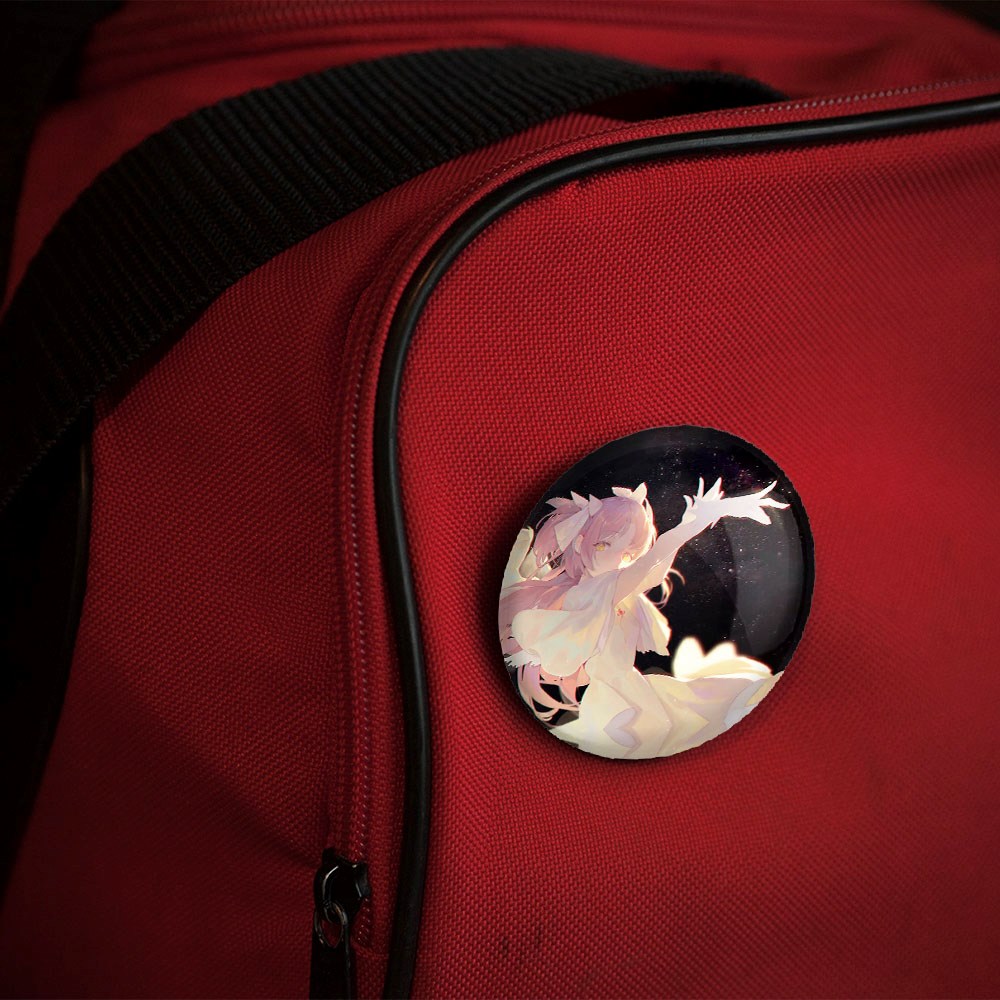 پیکسل 44 میلی متری مادوکا کانام انیمه مادوکا مجیکا Madoka Magica خندالو با روکش سلفون حرارتی مات مخملی ضدخش و قطعه پشتی رنگی تولید شده است.پلاستیکی پشت پیکسل با سوزن یک تکه ثابت و بدون لغزش و جا به جایی، ایستایی بسیار بهتری نسبت به پشتی فلزی پیکسل دارند که این مهم در تولید این محصول نیز رعایت شده است.