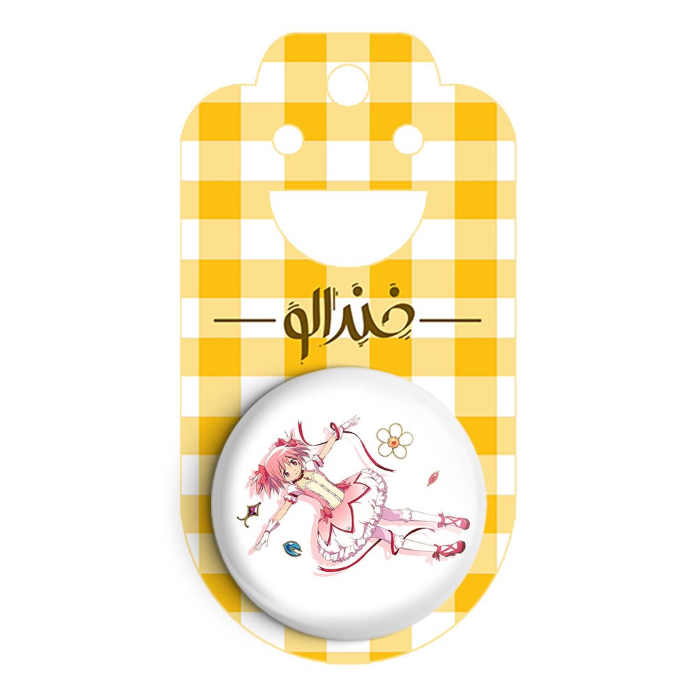 پیکسل 44 میلی متری مادوکا کانام انیمه مادوکا مجیکا Madoka Magica خندالو با روکش سلفون حرارتی مات مخملی ضدخش و قطعه پشتی رنگی تولید شده است.پلاستیکی پشت پیکسل با سوزن یک تکه ثابت و بدون لغزش و جا به جایی، ایستایی بسیار بهتری نسبت به پشتی فلزی پیکسل دارند که این مهم در تولید این محصول نیز رعایت شده است.