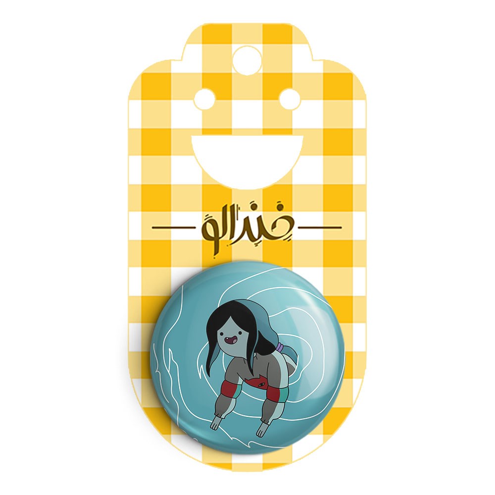 پیکسل 44 میلی متری مارسلین وقت ماجراجویی Adventure Time خندالو با روکش سلفون حرارتی مات مخملی ضدخش و قطعه پشتی رنگی تولید شده است.پلاستیکی پشت پیکسل با سوزن یک تکه ثابت و بدون لغزش و جا به جایی، ایستایی بسیار بهتری نسبت به پشتی فلزی پیکسل دارند که این مهم در تولید این محصول نیز رعایت شده است.