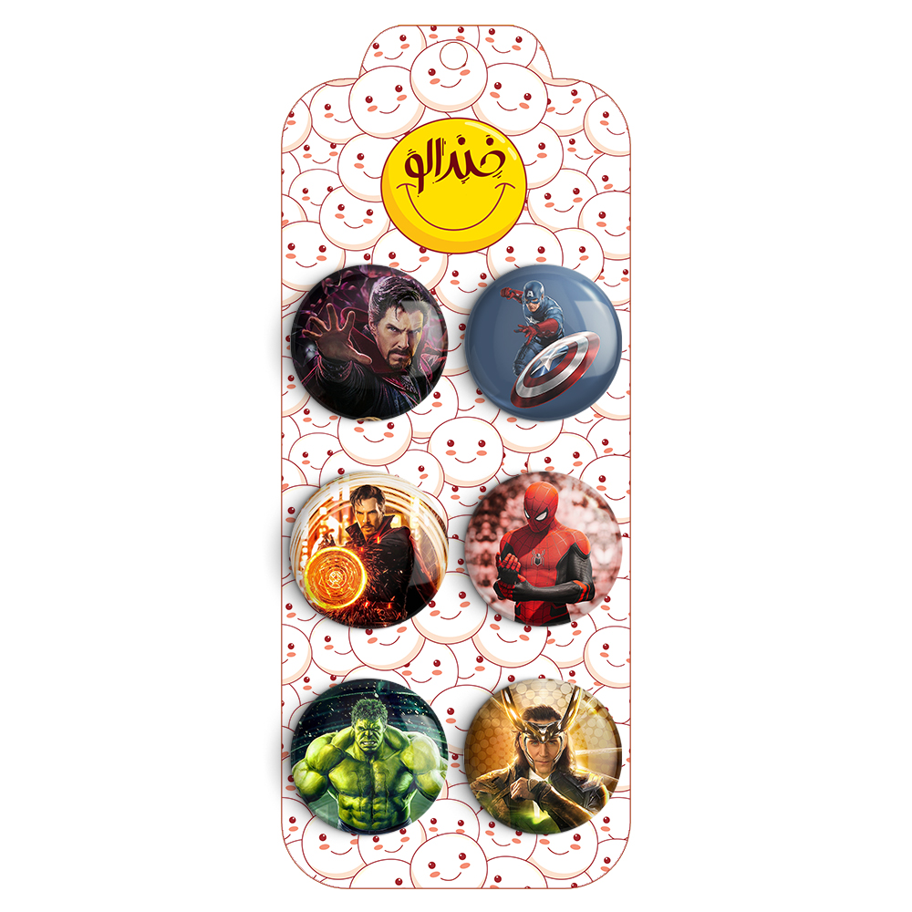 مجموعه 6 عددی پیکسل خندالو طرح مارول (Marvel) با روکش سلفون حرارتی براق ضدخش و قطعه پشتی رنگی تولید شده است. قطعات پشتی از میان 6 رنگ سفید، مشکی، صورتی، زرد، آبی و قرمز که با توجه به نوع و رنگبندی طرح روی پیکسل انتخاب شده اند تولید می شود و در هر بسته بندی مطابق عکس محصول می باشد.