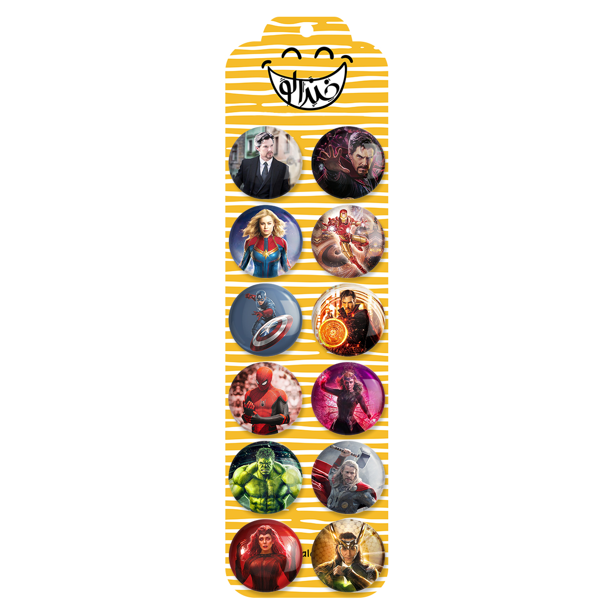 پک 12 عددی پیکسل خندالو طرح مارول (Marvel) با روکش سلفون حرارتی براق ضدخش و قطعه پشتی رنگی تولید شده است. قطعات پشتی از میان 6 رنگ سفید، مشکی، صورتی، زرد، آبی و قرمز که با توجه به نوع و رنگبندی طرح روی پیکسل انتخاب شده اند تولید می شود و در هر بسته بندی مطابق عکس محصول می باشد. قطعات پلاستیکی پشت پیکسل با سوزن یک تکه ثابت و بدون لغزش و جا به جایی، ایستایی بسیار بهتری نسبت به پشتی فلزی پیکسل دارند که این مهم در تولید این محصول نیز رعایت شده است. چاپ پیکسل طرح مارول (Marvel) بسته ۱۲ عددی نیز با دستگاه های استاندارد و با بهترین سطح کیفی صورت گرفته و طرح با شفافیتی مثال زدنی و با سلفونی بدون شکست نور بر روی پیکسل نقش بسته است.
