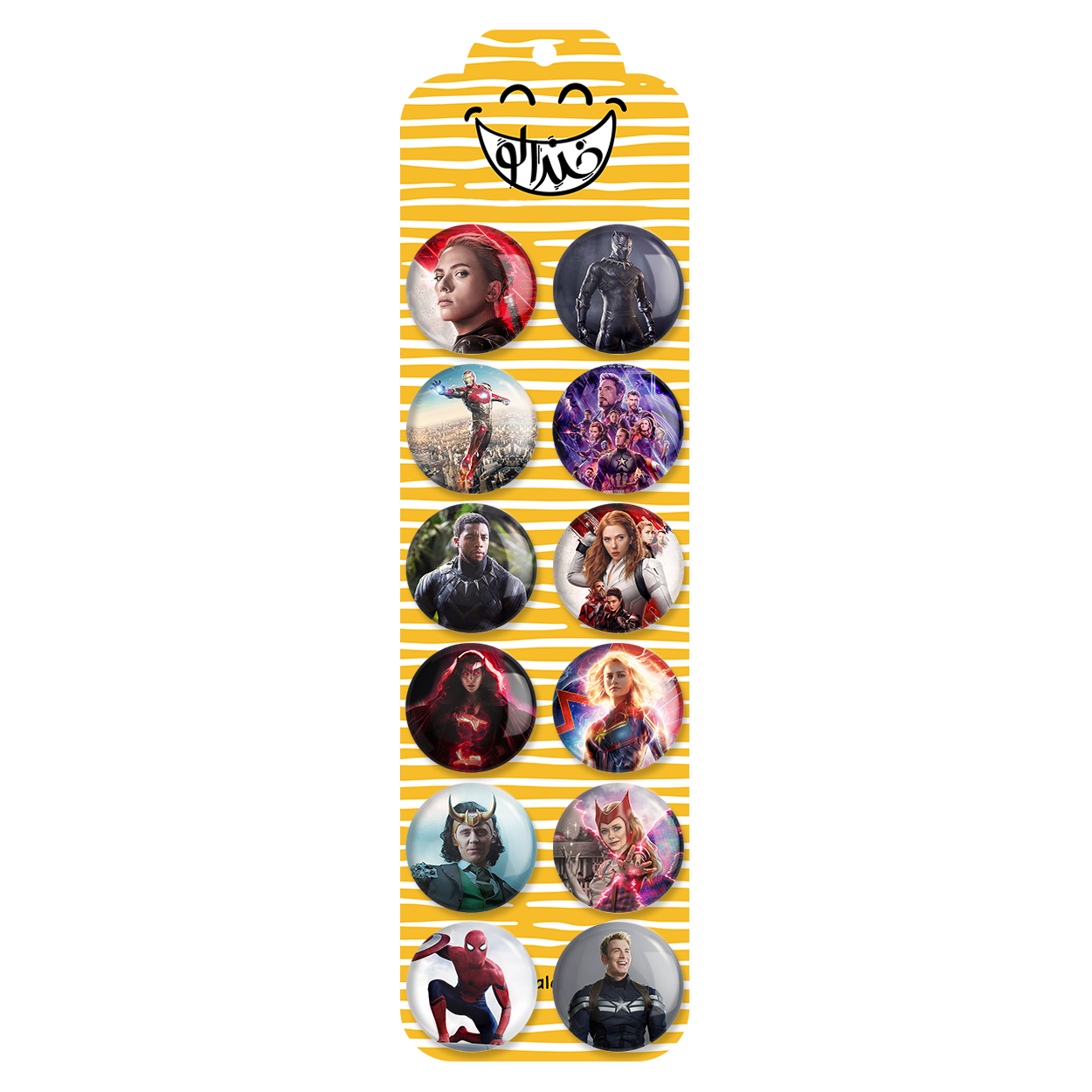 پک 12 عددی پیکسل خندالو طرح مارول (Marvel) با روکش سلفون حرارتی براق ضدخش و قطعه پشتی رنگی تولید شده است. قطعات پشتی از میان 6 رنگ سفید، مشکی، صورتی، زرد، آبی و قرمز که با توجه به نوع و رنگبندی طرح روی پیکسل انتخاب شده اند تولید می شود و در هر بسته بندی مطابق عکس محصول می باشد. قطعات پلاستیکی پشت پیکسل با سوزن یک تکه ثابت و بدون لغزش و جا به جایی، ایستایی بسیار بهتری نسبت به پشتی فلزی پیکسل دارند که این مهم در تولید این محصول نیز رعایت شده است. چاپ پیکسل طرح مارول (Marvel) بسته ۱۲ عددی نیز با دستگاه های استاندارد و با بهترین سطح کیفی صورت گرفته و طرح با شفافیتی مثال زدنی و با سلفونی بدون شکست نور بر روی پیکسل نقش بسته است.