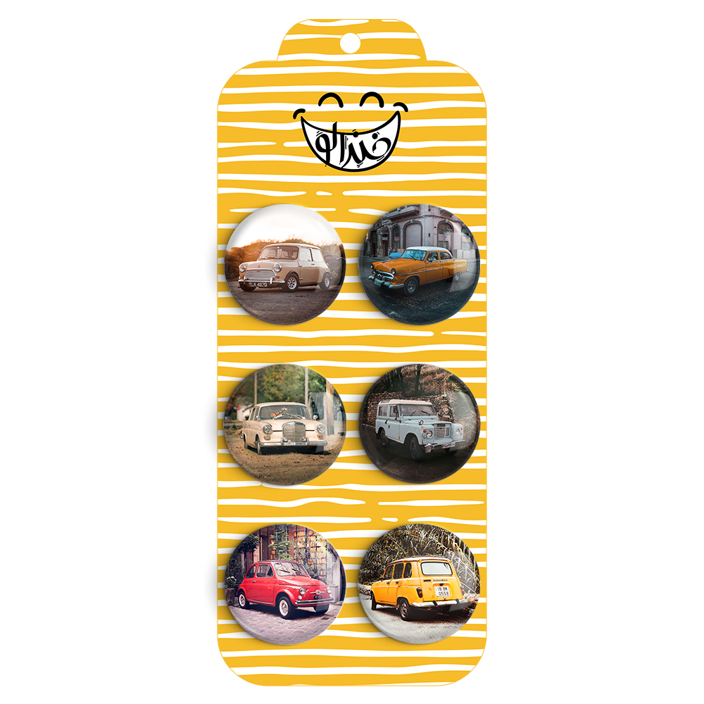 مجموعه 6 عددی پیکسل خندالو طرح ماشین کلاسیک با روکش سلفون حرارتی براق ضدخش و قطعه پشتی رنگی تولید شده است. قطعات پشتی از میان 6 رنگ سفید، مشکی، صورتی، زرد، آبی و قرمز که با توجه به نوع و رنگبندی طرح روی پیکسل انتخاب شده اند تولید می شود و در هر بسته بندی مطابق عکس محصول می باشد.