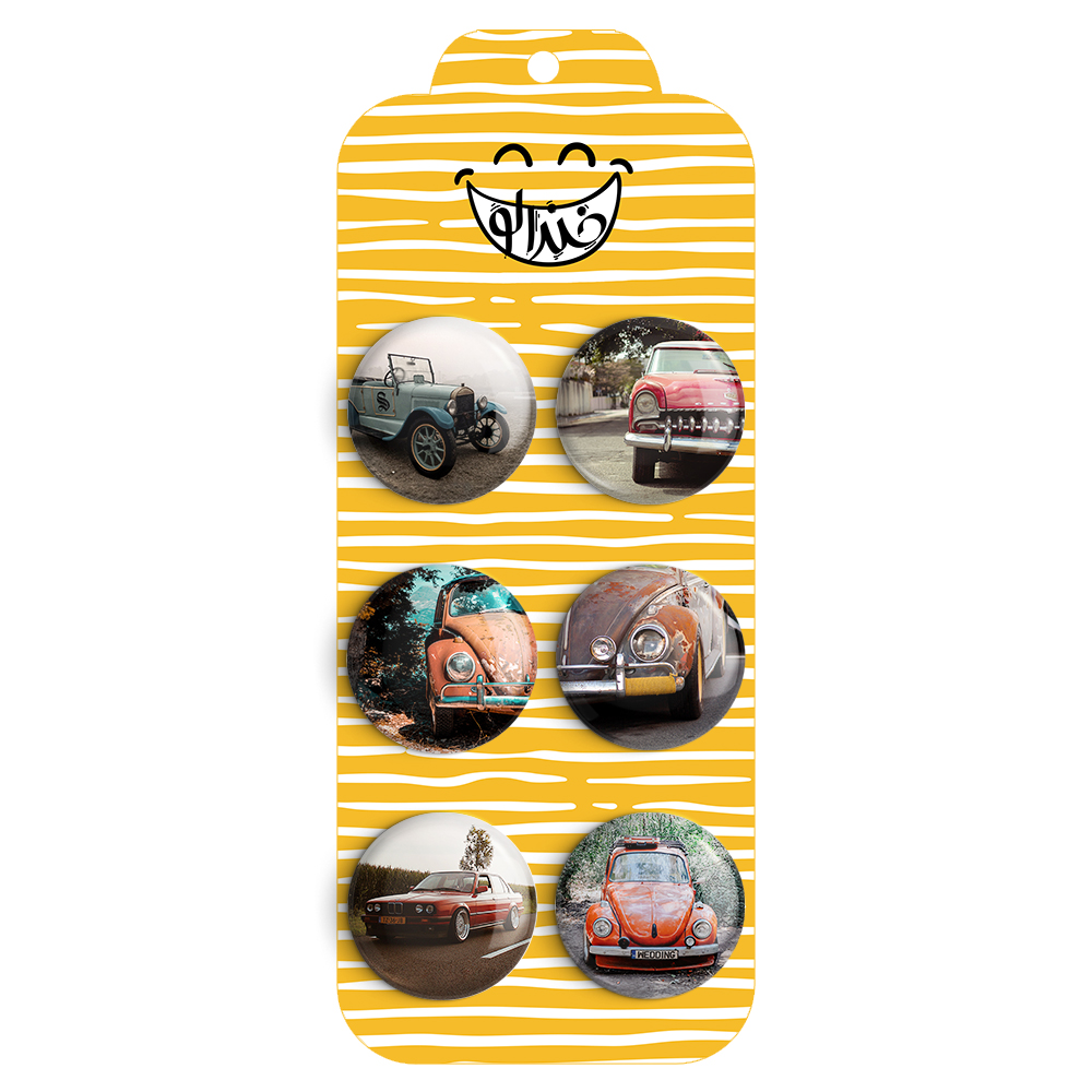 مجموعه 6 عددی پیکسل خندالو طرح ماشین کلاسیک با روکش سلفون حرارتی براق ضدخش و قطعه پشتی رنگی تولید شده است. قطعات پشتی از میان 6 رنگ سفید، مشکی، صورتی، زرد، آبی و قرمز که با توجه به نوع و رنگبندی طرح روی پیکسل انتخاب شده اند تولید می شود و در هر بسته بندی مطابق عکس محصول می باشد. قطعات پلاستیکی پشت پیکسل با سوزن یک تکه ثابت و بدون لغزش و جا به جایی، ایستایی بسیار بهتری نسبت به پشتی فلزی پیکسل دارند که این مهم در تولید این محصول نیز رعایت شده است. چاپ پیکسل نیز با دستگاه های استاندارد و با بهترین سطح کیفی صورت گرفته و طرح با شفافیتی مثال زدنی و با سلفونی بدون شکست نور بر روی پیکسل نقش بسته است. همچنین بسته بندی جذاب و مینیمال پیکسل ها، آنها را مناسب هدیه کرده است..
