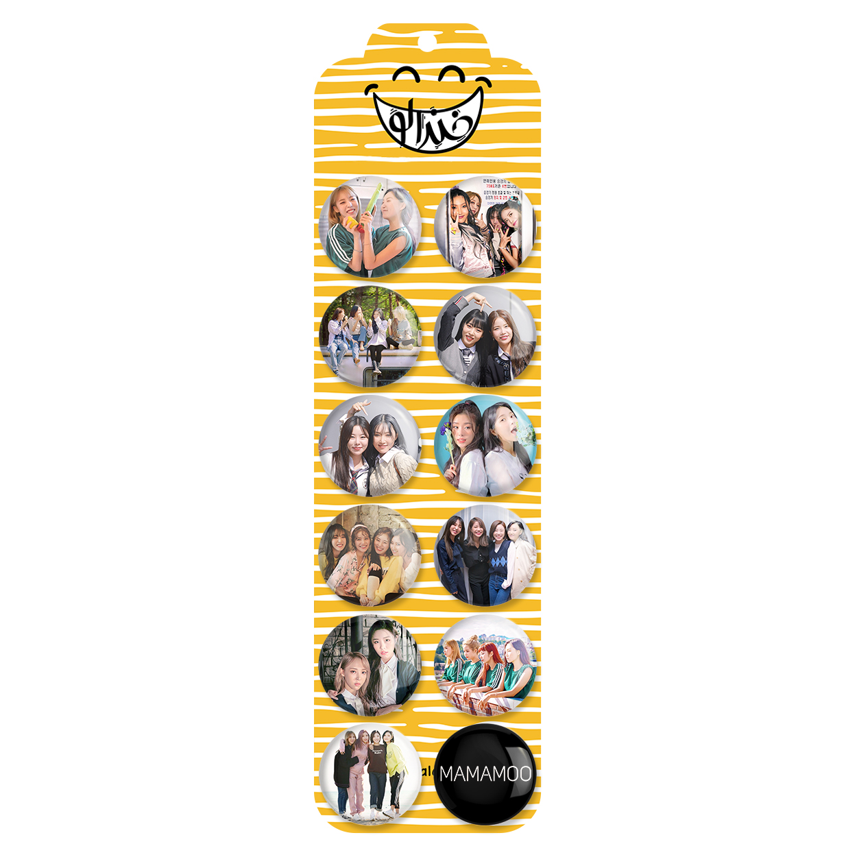 پک 12 عددی پیکسل خندالو طرح مامامو (Mamamoo) با روکش سلفون حرارتی براق ضدخش و قطعه پشتی رنگی تولید شده است. قطعات پشتی از میان 6 رنگ سفید، مشکی، صورتی، زرد، آبی و قرمز که با توجه به نوع و رنگبندی طرح روی پیکسل انتخاب شده اند تولید می شود و در هر بسته بندی مطابق عکس محصول می باشد. قطعات پلاستیکی پشت پیکسل با سوزن یک تکه ثابت و بدون لغزش و جا به جایی، ایستایی بسیار بهتری نسبت به پشتی فلزی پیکسل دارند که این مهم در تولید این محصول نیز رعایت شده است.