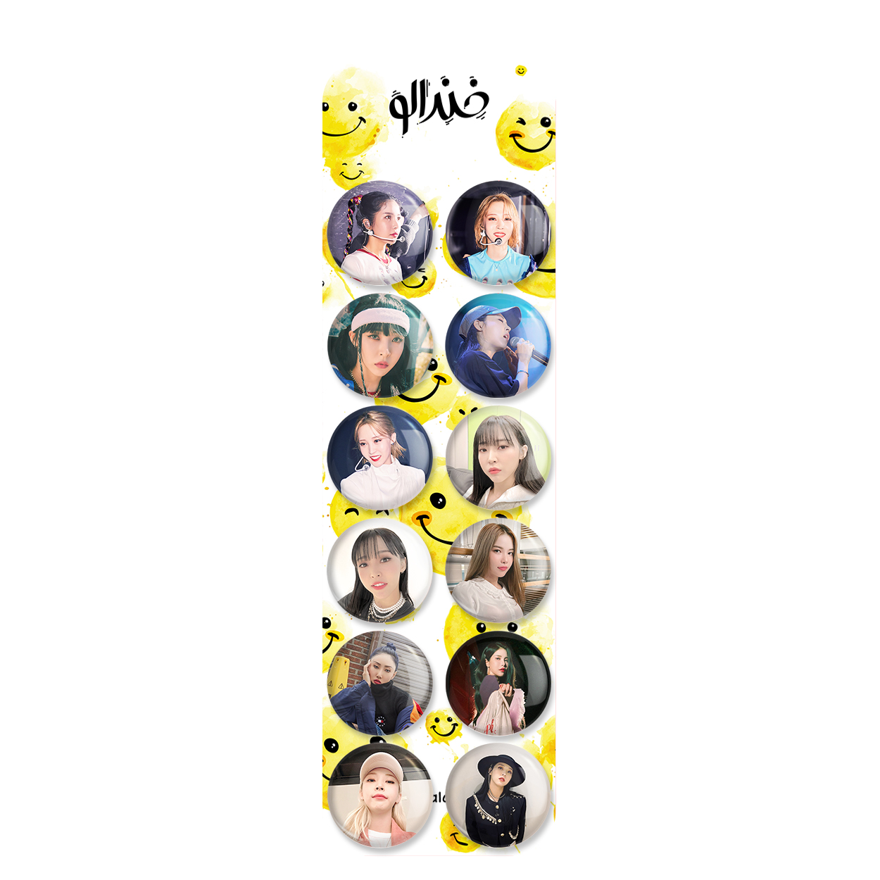 پک 12 عددی پیکسل خندالو طرح مامامو (Mamamoo) با روکش سلفون حرارتی براق ضدخش و قطعه پشتی رنگی تولید شده است. قطعات پشتی از میان 6 رنگ سفید، مشکی، صورتی، زرد، آبی و قرمز که با توجه به نوع و رنگبندی طرح روی پیکسل انتخاب شده اند تولید می شود و در هر بسته بندی مطابق عکس محصول می باشد. قطعات پلاستیکی پشت پیکسل با سوزن یک تکه ثابت و بدون لغزش و جا به جایی، ایستایی بسیار بهتری نسبت به پشتی فلزی پیکسل دارند که این مهم در تولید این محصول نیز رعایت شده است.