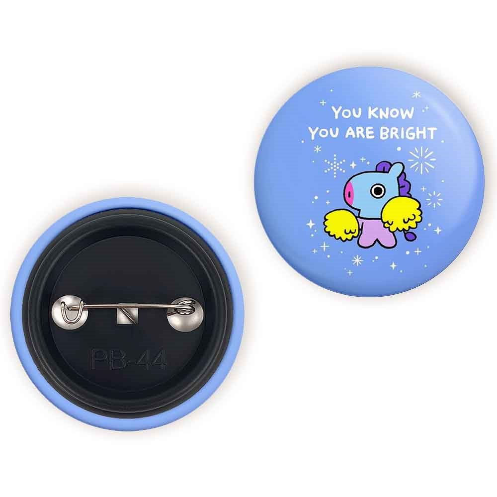 پیکسل 44 میلی متری مانگ BT21 Mang خندالو با روکش سلفون حرارتی مات مخملی ضدخش و قطعه پشتی رنگی تولید شده است.پلاستیکی پشت پیکسل با سوزن یک تکه ثابت و بدون لغزش و جا به جایی، ایستایی بسیار بهتری نسبت به پشتی فلزی پیکسل دارند که این مهم در تولید این محصول نیز رعایت شده است.