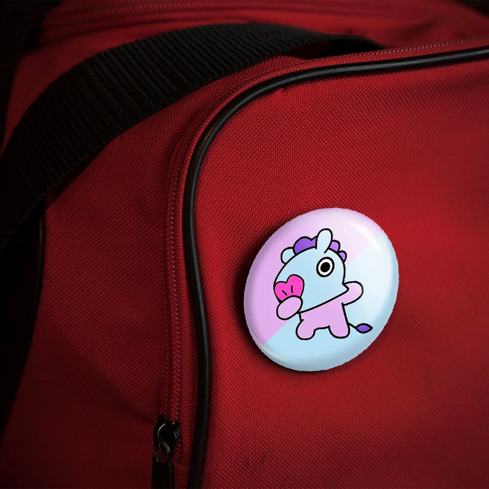 پیکسل 44 میلی متری مانگ BT21 Mang خندالو با روکش سلفون حرارتی مات مخملی ضدخش و قطعه پشتی رنگی تولید شده است.پلاستیکی پشت پیکسل با سوزن یک تکه ثابت و بدون لغزش و جا به جایی، ایستایی بسیار بهتری نسبت به پشتی فلزی پیکسل دارند که این مهم در تولید این محصول نیز رعایت شده است.