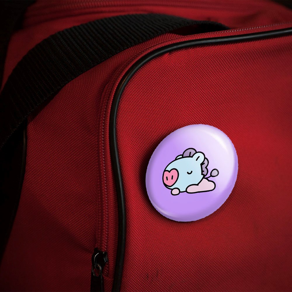 پیکسل 44 میلی متری مانگ BT21 Mang خندالو با روکش سلفون حرارتی مات مخملی ضدخش و قطعه پشتی رنگی تولید شده است.پلاستیکی پشت پیکسل با سوزن یک تکه ثابت و بدون لغزش و جا به جایی، ایستایی بسیار بهتری نسبت به پشتی فلزی پیکسل دارند که این مهم در تولید این محصول نیز رعایت شده است.