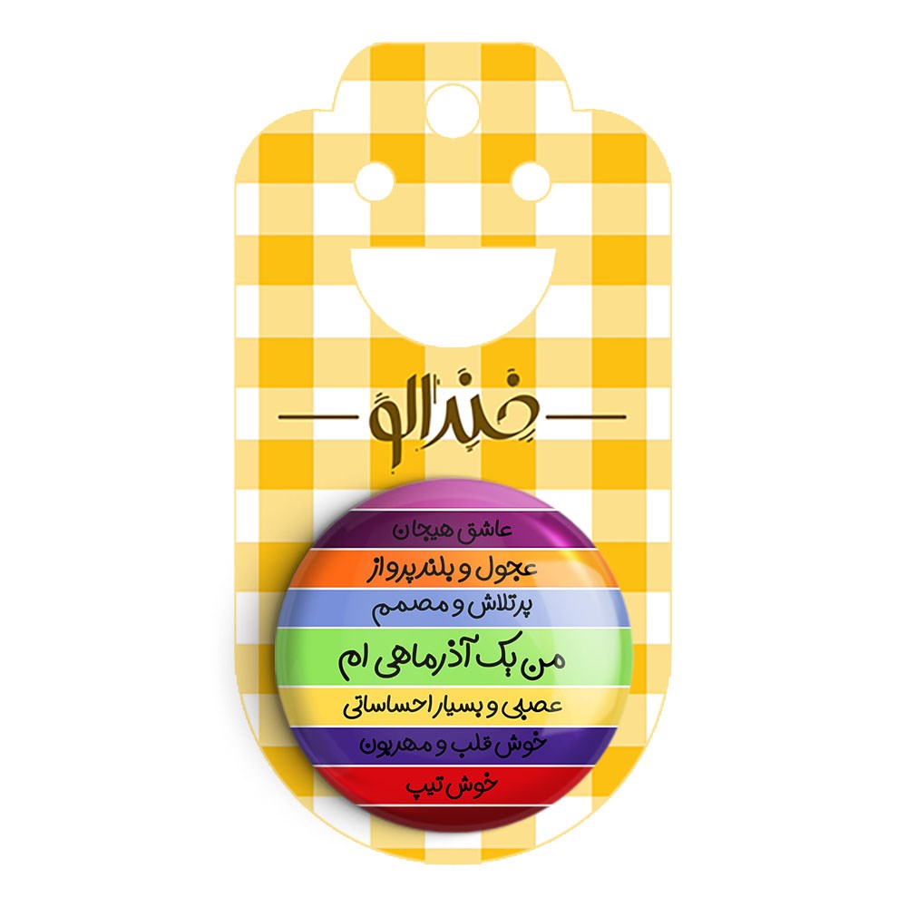 پیکسل 44 میلی متری ماه تولد آذر خندالو با روکش سلفون حرارتی مات مخملی ضدخش و قطعه پشتی رنگی تولید شده است.پلاستیکی پشت پیکسل با سوزن یک تکه ثابت و بدون لغزش و جا به جایی، ایستایی بسیار بهتری نسبت به پشتی فلزی پیکسل دارند که این مهم در تولید این محصول نیز رعایت شده است.