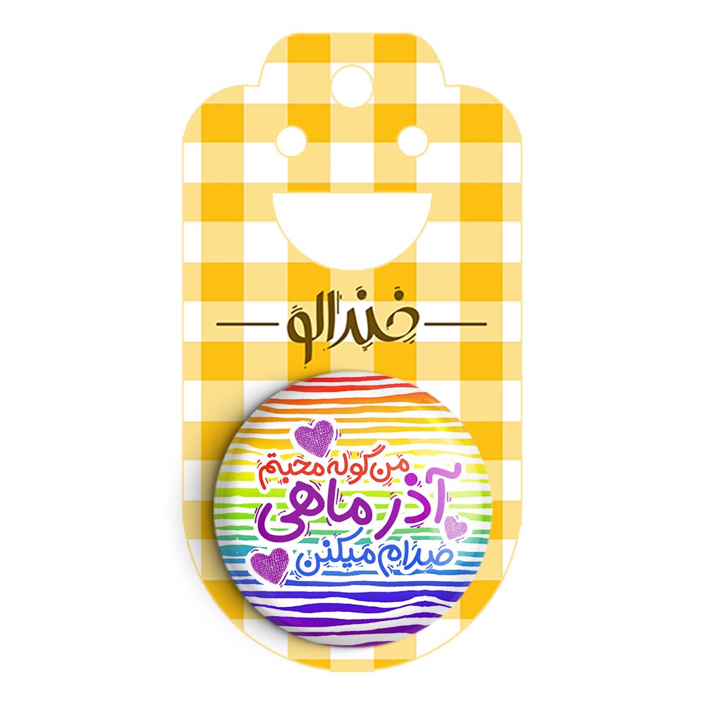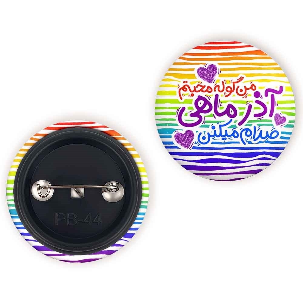 پیکسل 44 میلی متری ماه تولد آذر خندالو با روکش سلفون حرارتی مات مخملی ضدخش و قطعه پشتی رنگی تولید شده است.پلاستیکی پشت پیکسل با سوزن یک تکه ثابت و بدون لغزش و جا به جایی، ایستایی بسیار بهتری نسبت به پشتی فلزی پیکسل دارند که این مهم در تولید این محصول نیز رعایت شده است.