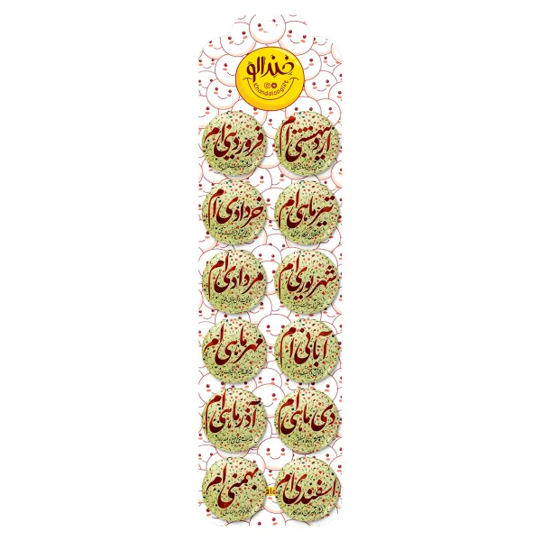 پک 12 عددی پیکسل خندالو طرح ماه های تولد با روکش سلفون حرارتی براق ضدخش و قطعه پشتی رنگی تولید شده است. قطعات پشتی از میان 6 رنگ سفید، مشکی، صورتی، زرد، آبی و قرمز که با توجه به نوع و رنگبندی طرح روی پیکسل انتخاب شده اند تولید می شود و در هر بسته بندی مطابق عکس محصول می باشد. قطعات پلاستیکی پشت پیکسل با سوزن یک تکه ثابت و بدون لغزش و جا به جایی، ایستایی بسیار بهتری نسبت به پشتی فلزی پیکسل دارند که این مهم در تولید این محصول نیز رعایت شده است. چاپ پیکسل طرح ماه های تولد بسته ۱۲ عددی نیز با دستگاه های استاندارد و با بهترین سطح کیفی صورت گرفته و طرح با شفافیتی مثال زدنی و با سلفونی بدون شکست نور بر روی پیکسل نقش بسته است.