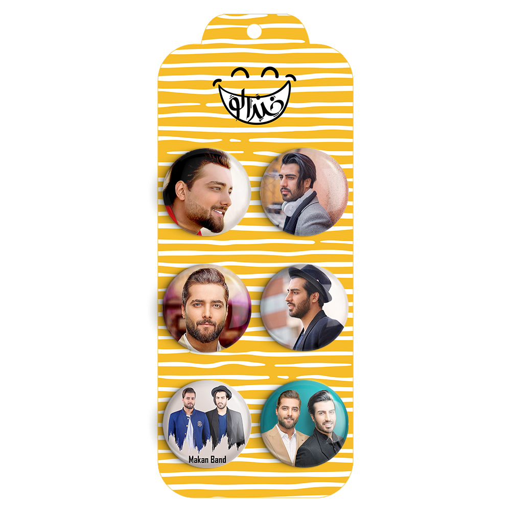 مجموعه 6 عددی پیکسل خندالو طرح ماکان بند (Makan Band) با روکش سلفون حرارتی براق ضدخش و قطعه پشتی رنگی تولید شده است. قطعات پشتی از میان 6 رنگ سفید، مشکی، صورتی، زرد، آبی و قرمز که با توجه به نوع و رنگبندی طرح روی پیکسل انتخاب شده اند تولید می شود و در هر بسته بندی مطابق عکس محصول می باشد. قطعات پلاستیکی پشت پیکسل با سوزن یک تکه ثابت و بدون لغزش و جا به جایی، ایستایی بسیار بهتری نسبت به پشتی فلزی پیکسل دارند که این مهم در تولید این محصول نیز رعایت شده است. چاپ پیکسل نیز با دستگاه های استاندارد و با بهترین سطح کیفی صورت گرفته و طرح با شفافیتی مثال زدنی و با سلفونی بدون شکست نور بر روی پیکسل نقش بسته است. همچنین بسته بندی جذاب و مینیمال پیکسل ها، آنها را مناسب هدیه کرده است..