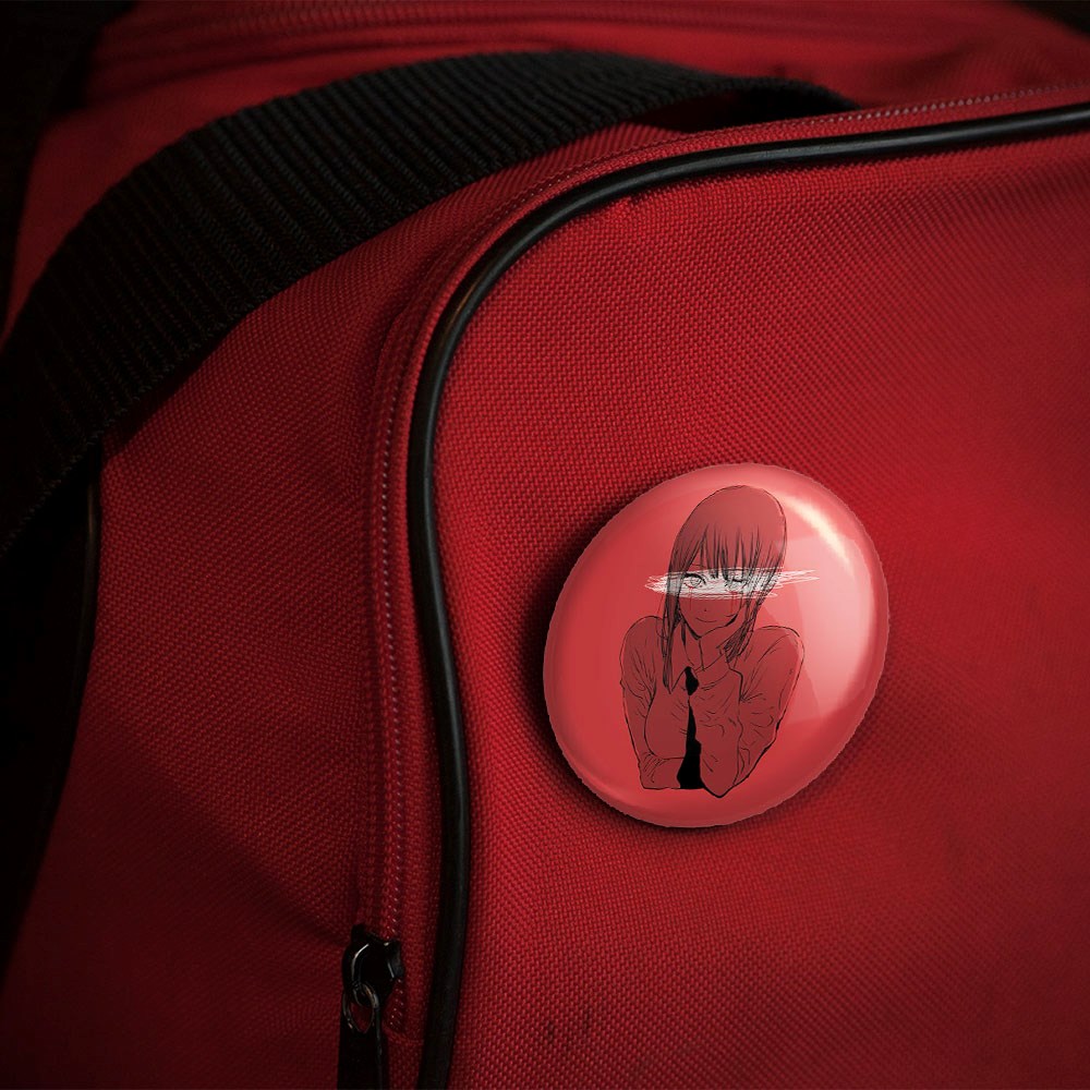 پیکسل 44 میلی متری ماکیما انیمه مرد اره ای Chainsaw Man خندالو با روکش سلفون حرارتی مات مخملی ضدخش و قطعه پشتی رنگی تولید شده است.پلاستیکی پشت پیکسل با سوزن یک تکه ثابت و بدون لغزش و جا به جایی، ایستایی بسیار بهتری نسبت به پشتی فلزی پیکسل دارند که این مهم در تولید این محصول نیز رعایت شده است.