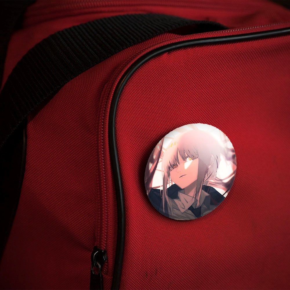 پیکسل 44 میلی متری ماکیما انیمه مرد اره ای Chainsaw Man خندالو با روکش سلفون حرارتی مات مخملی ضدخش و قطعه پشتی رنگی تولید شده است.پلاستیکی پشت پیکسل با سوزن یک تکه ثابت و بدون لغزش و جا به جایی، ایستایی بسیار بهتری نسبت به پشتی فلزی پیکسل دارند که این مهم در تولید این محصول نیز رعایت شده است.