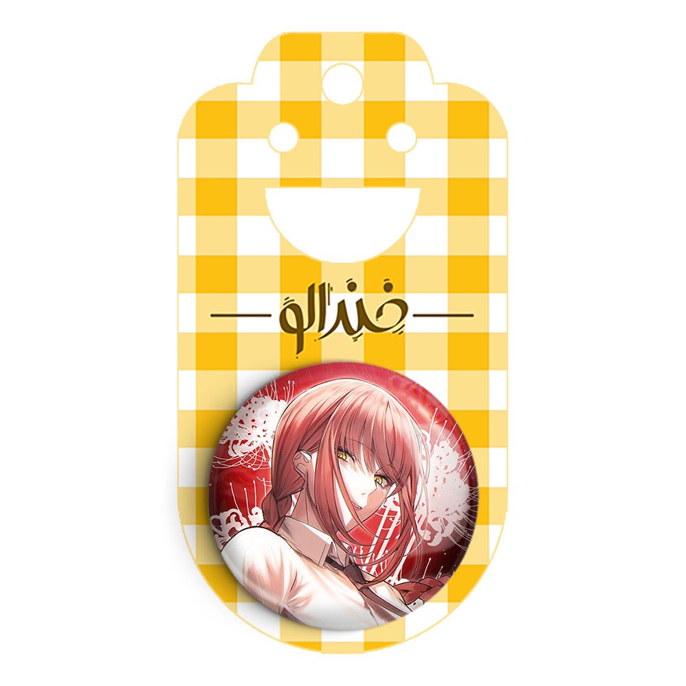 پیکسل 44 میلی متری ماکیما انیمه مرد اره ای Chainsaw Man خندالو با روکش سلفون حرارتی مات مخملی ضدخش و قطعه پشتی رنگی تولید شده است.پلاستیکی پشت پیکسل با سوزن یک تکه ثابت و بدون لغزش و جا به جایی، ایستایی بسیار بهتری نسبت به پشتی فلزی پیکسل دارند که این مهم در تولید این محصول نیز رعایت شده است.