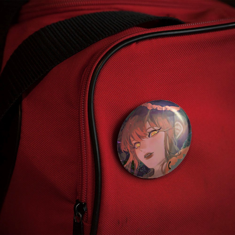 پیکسل 44 میلی متری ماکیما انیمه مرد اره ای Chainsaw Man خندالو با روکش سلفون حرارتی مات مخملی ضدخش و قطعه پشتی رنگی تولید شده است.پلاستیکی پشت پیکسل با سوزن یک تکه ثابت و بدون لغزش و جا به جایی، ایستایی بسیار بهتری نسبت به پشتی فلزی پیکسل دارند که این مهم در تولید این محصول نیز رعایت شده است.